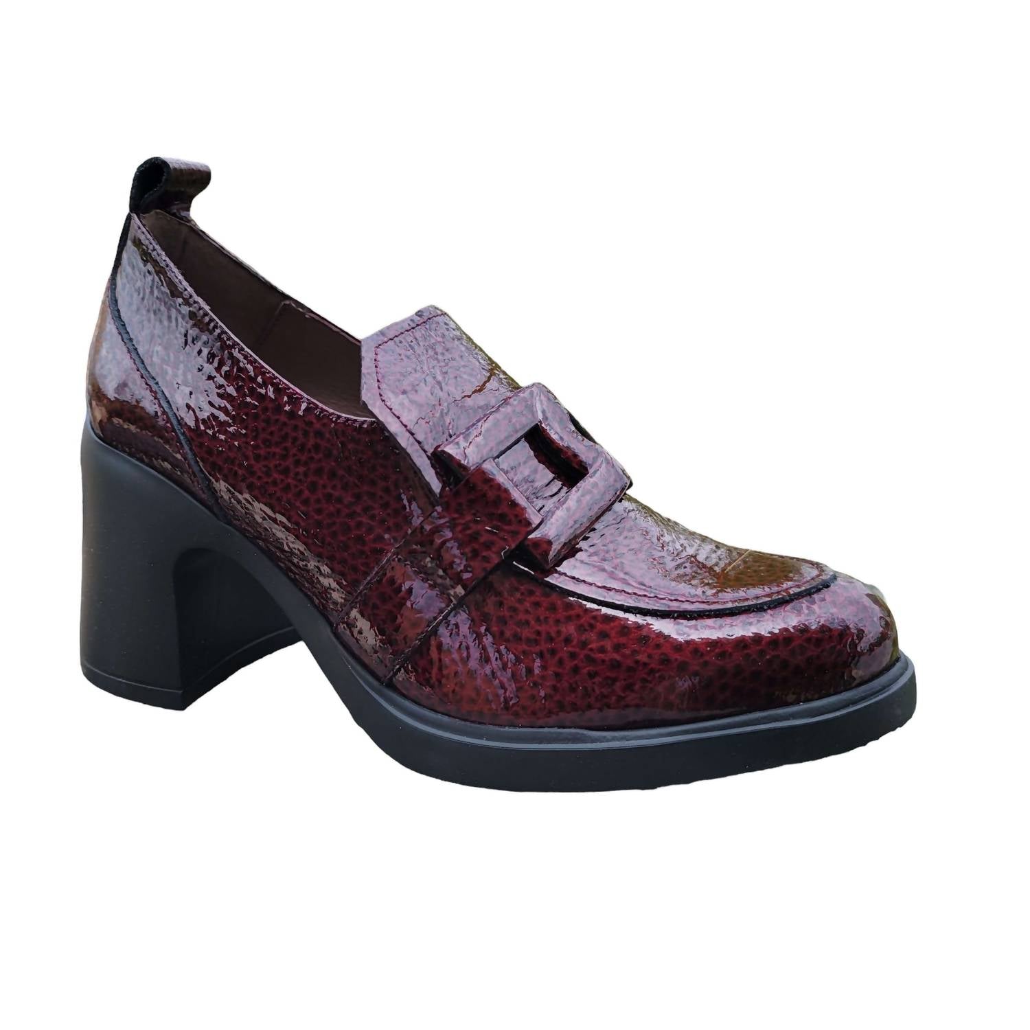 This Subu Patent Heeled Loafer is made from patent leather, featuring a classic loafer style with a buckle embellishment and a 2.95-inch heel for stability and comfort. Designed with a comfort insole, it’s suitable for all-day wear and pairs well with both office and evening outfits. Consider sizing up for a better fit.
