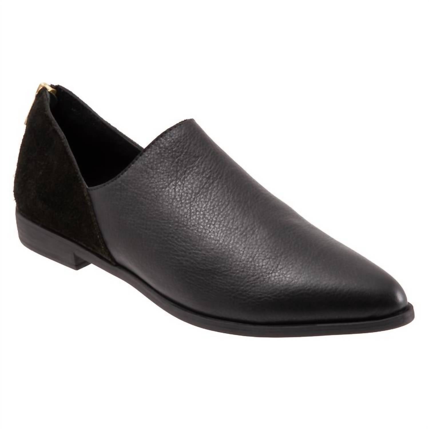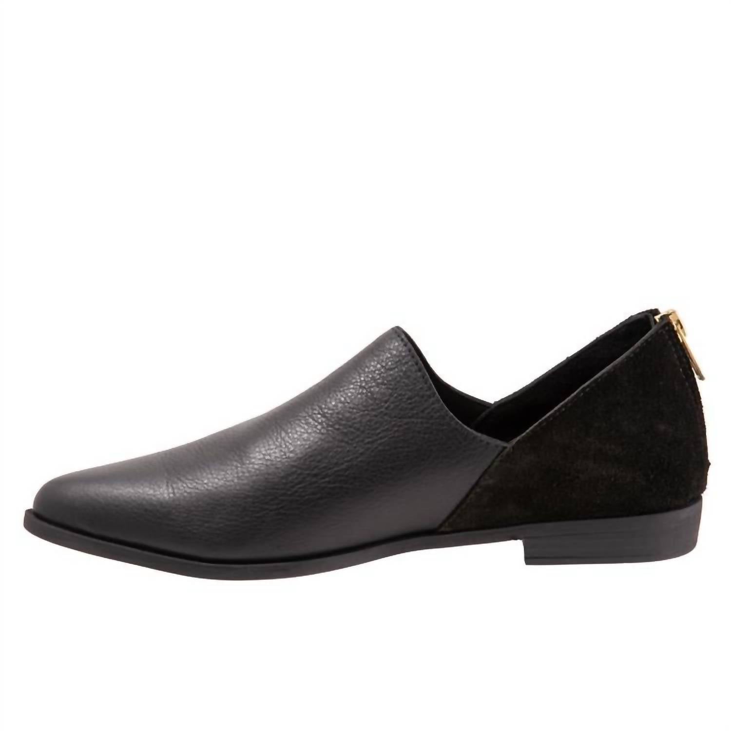 A preppy yet feminine take on the classic loafer. The Women's Beau Slip-on Shoes by Bueno in sophisticated black offer both style and confidence. Crafted with a luxurious combination of suede and leather, these slip-ons feature a sleek pointed toe and a zipper closure for easy wear. The leather upper, lined footbed, and rubberized sole ensure comfort and durability, while the modest 3/4" heel height provides a subtle lift. Ideal for workwear or back-to-school seasons, these shoes are a perfect addition to any wardrobe.