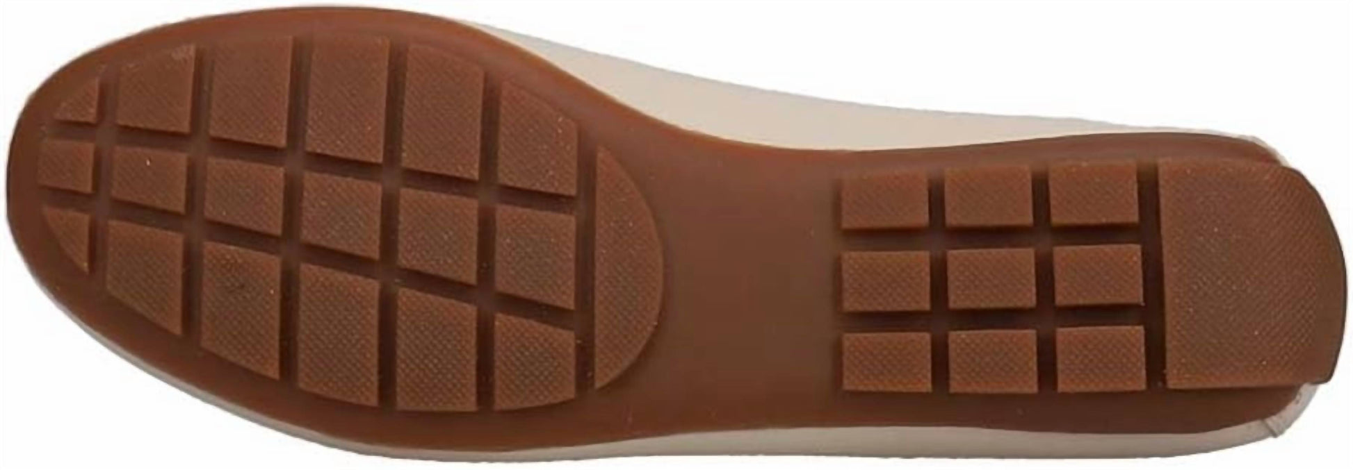 A preppy yet feminine take on the classic loafer. Introducing the Women's Adebel Penny Loafers by VANELi, a sophisticated choice for your summer wardrobe in a chic bone and white color. These leather driving mocs feature a round toe and a contrasting color basketweave vamp, providing a unique and stylish look. With a slip-on design, these loafers offer ease of wear, complemented by a lightly padded insole and a rubber outsole for comfort and durability. The flat heel stands at a subtle 0.5 inches, ensuring both style and everyday practicality.