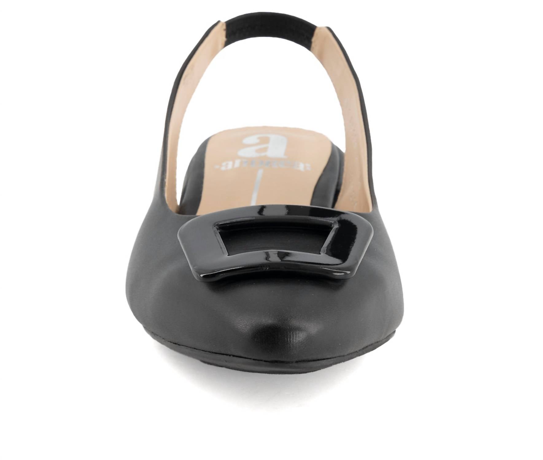 Loafers so versatile you can wear them with just about anything. Enhance your footwear collection with the Women's Elastic Slingback Flats by Andrea, expertly crafted for style and all-day comfort. These black flats feature a nylon composition and include a pointed toe design. The elastic slingback ensures an easy fit, complemented by a block heel with a height of just 1 inch. The Comfortech foam padded insole and anti-slip outsole provide added cushioning and stability, perfect for workwear or a holiday party.
