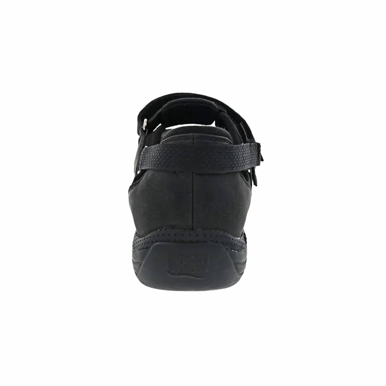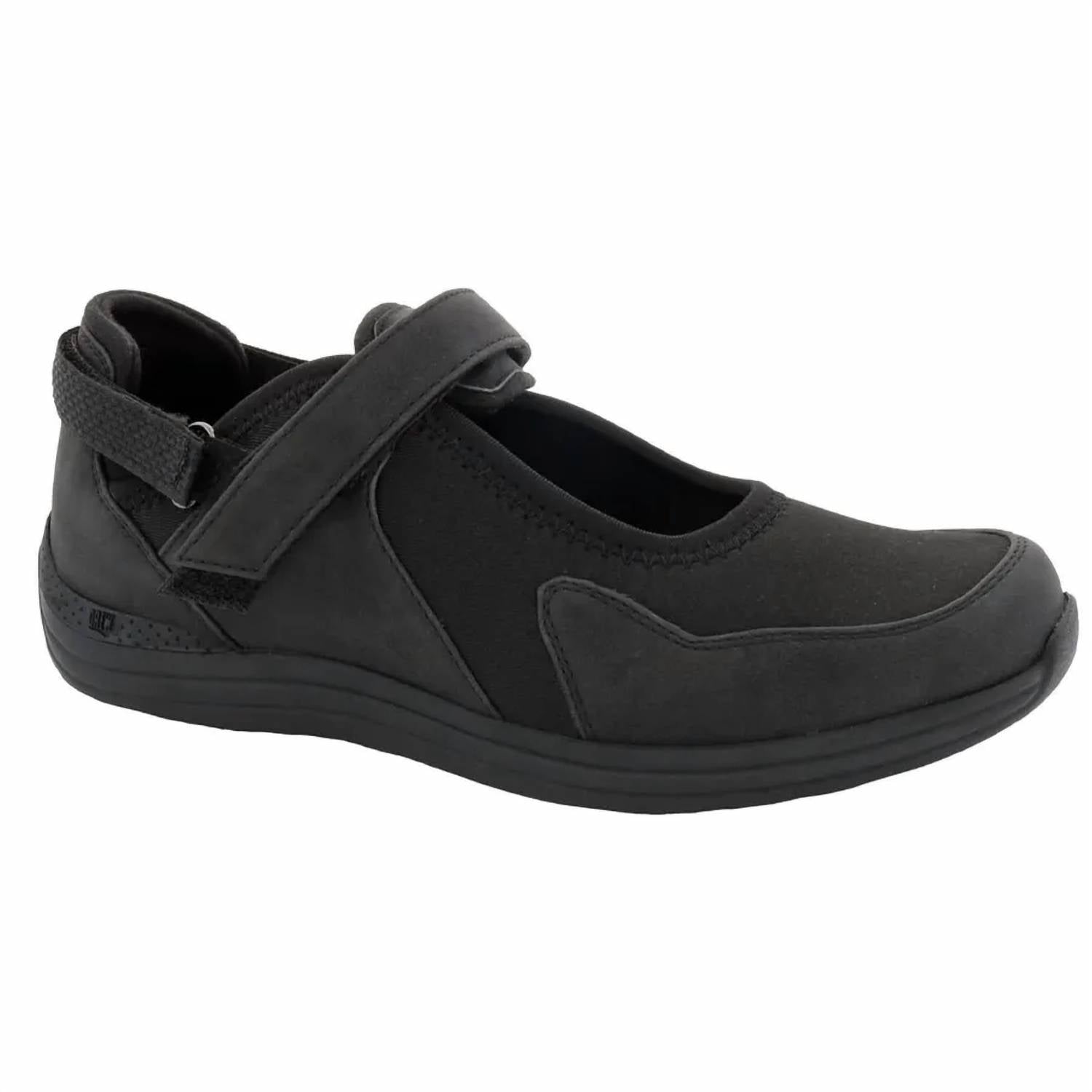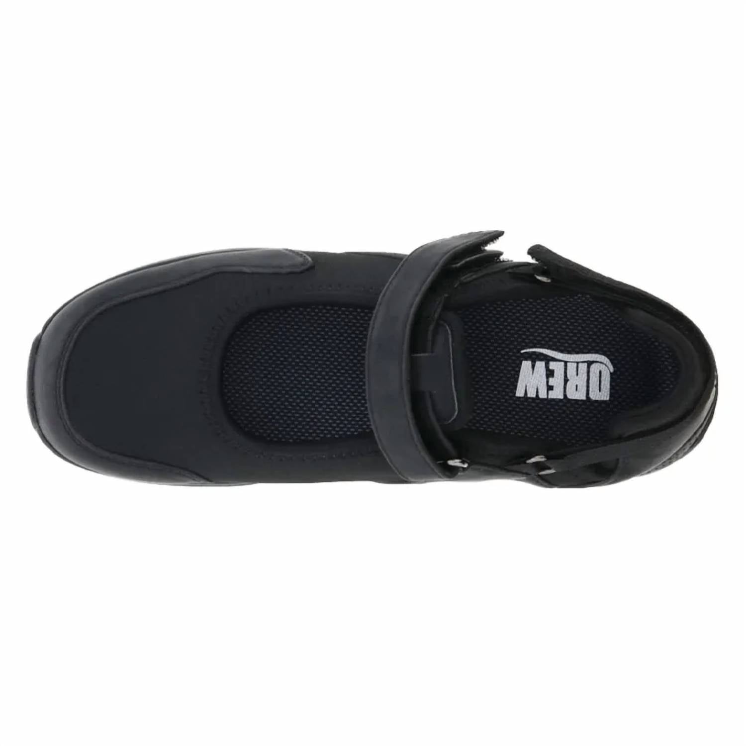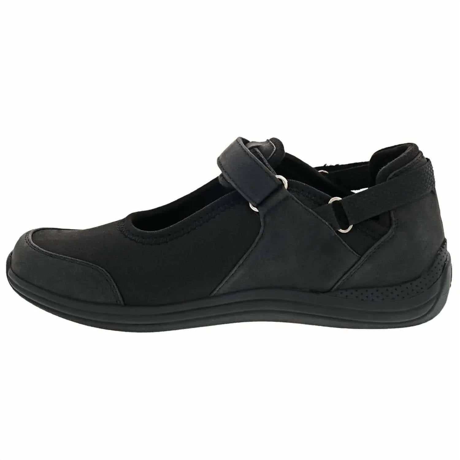 A preppy yet feminine take on the classic loafer. Introducing the Women's Buttercup Mary Jane by DREW, where functionality meets minimalist style. In a versatile black, this shoe features stretchy polyurethane uppers and a soft fabric lining for all-day comfort. Designed with a Plus Fitting System, it includes two removable footbeds with a Drilex topcover and a removable ULTRON insole, making it perfect for those who use prescribed orthotics. The shoe’s 1" flat heel height and extended medial heel stabilizer offer optimal support and stability.