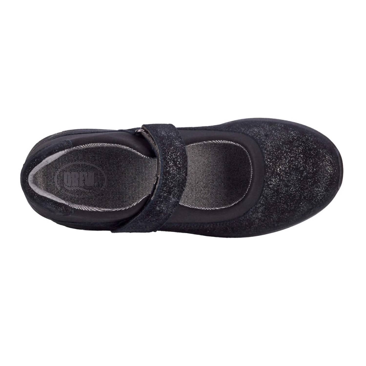 A classic loafer that is both comfortable and polished. Discover the DREW Women's Trust Mary Jane, a stylish and comfortable therapeutic shoe perfect for game day. Crafted from premium leather in a black/silver combo, this shoe features a low 1.25-inch platform heel for a subtle lift and a round toe shape for added comfort. Enhanced with Drew's Plus Fitting System® and Walk Right Technology Insole, it includes two removable footbeds for perfect fitting, while the polyurethane slip-resistant outsole ensures stability. Ideal for all-day wear, it accommodates prescribed orthotics and boasts a foam-padded collar for added comfort.