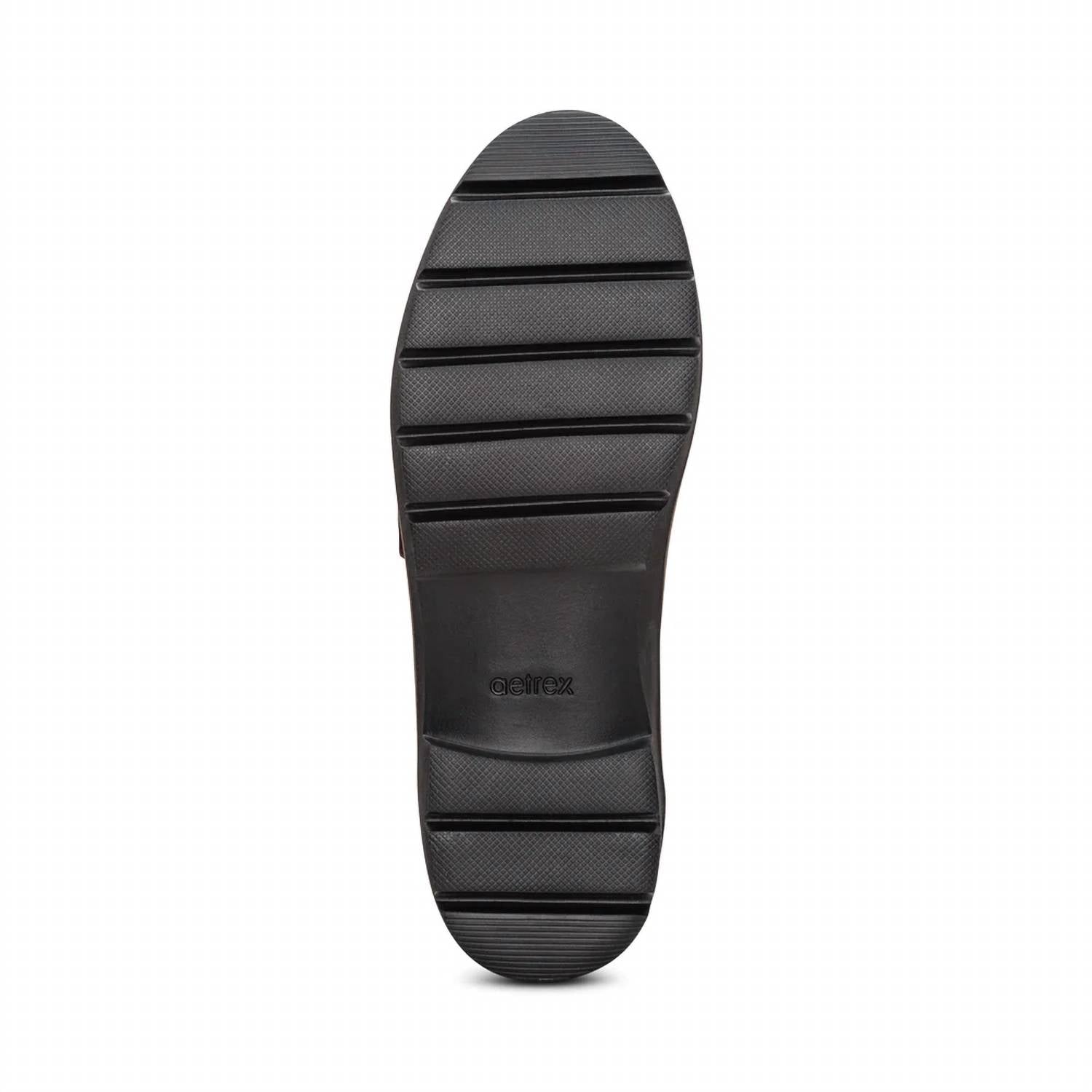 A preppy yet feminine take on the classic loafer. Introducing the Women's Collette Loafer by Aetrex in a striking burgundy hue, perfect for adding a touch of luxury to your wardrobe. With its round toe design and a low heel height of 1.25", this loafer is crafted from premium leather for a timeless appearance. The adjustable hook and loop closure ensures a personalized fit, while the lightweight EVA foam midsole and lightweight construction outsole enhance comfort and durability. Ideal for workwear and evening events, these loafers merge style with function seamlessly.