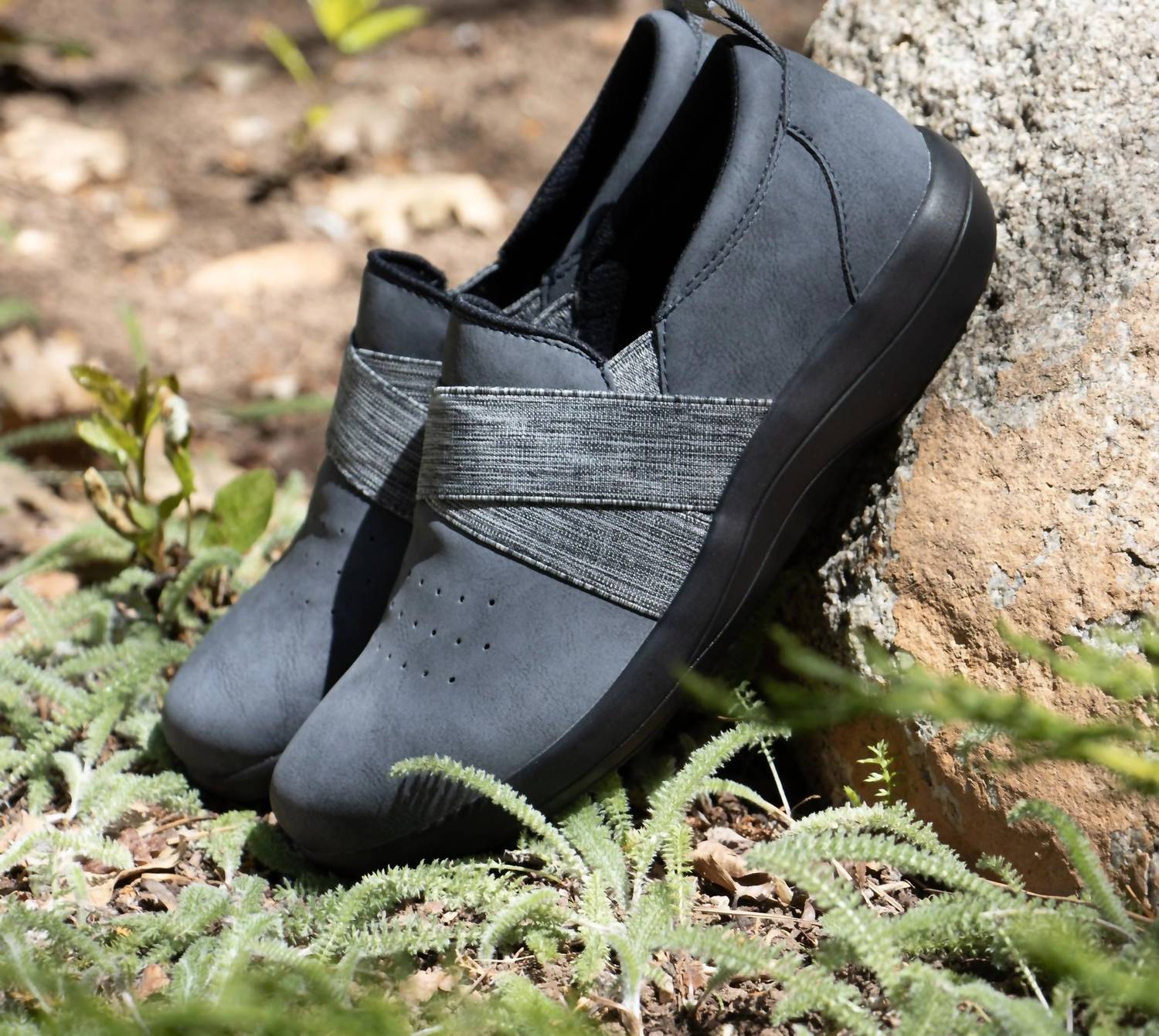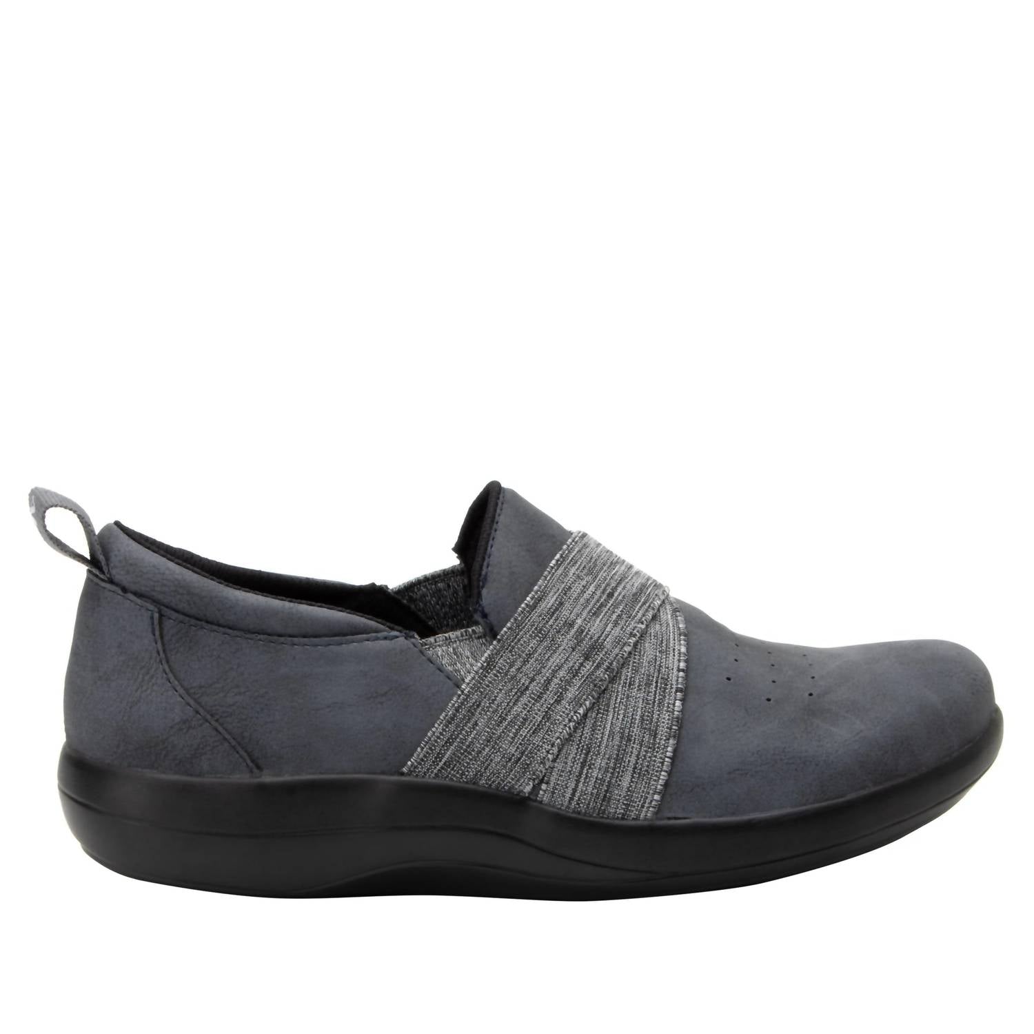 A preppy yet feminine take on the classic loafer. Discover the Women's Savvie Slip-on by Alegria, an exceptional vegan flat designed to effortlessly blend style and comfort. Featuring bold crisscross elastic bands, elastic gores, and a practical pull tab, this shoe ensures easy wearability while the padded collar and removable cushioned footbed offer superior comfort. Made with a vegan upper and textile lining, the Cinder colorway features a lightweight polyurethane outsole with slip-resistant, non-marking properties, and a heel height of 1". The APMA Accepted platform heel is perfect for any grunge-inspired look this Halloween season and beyond.