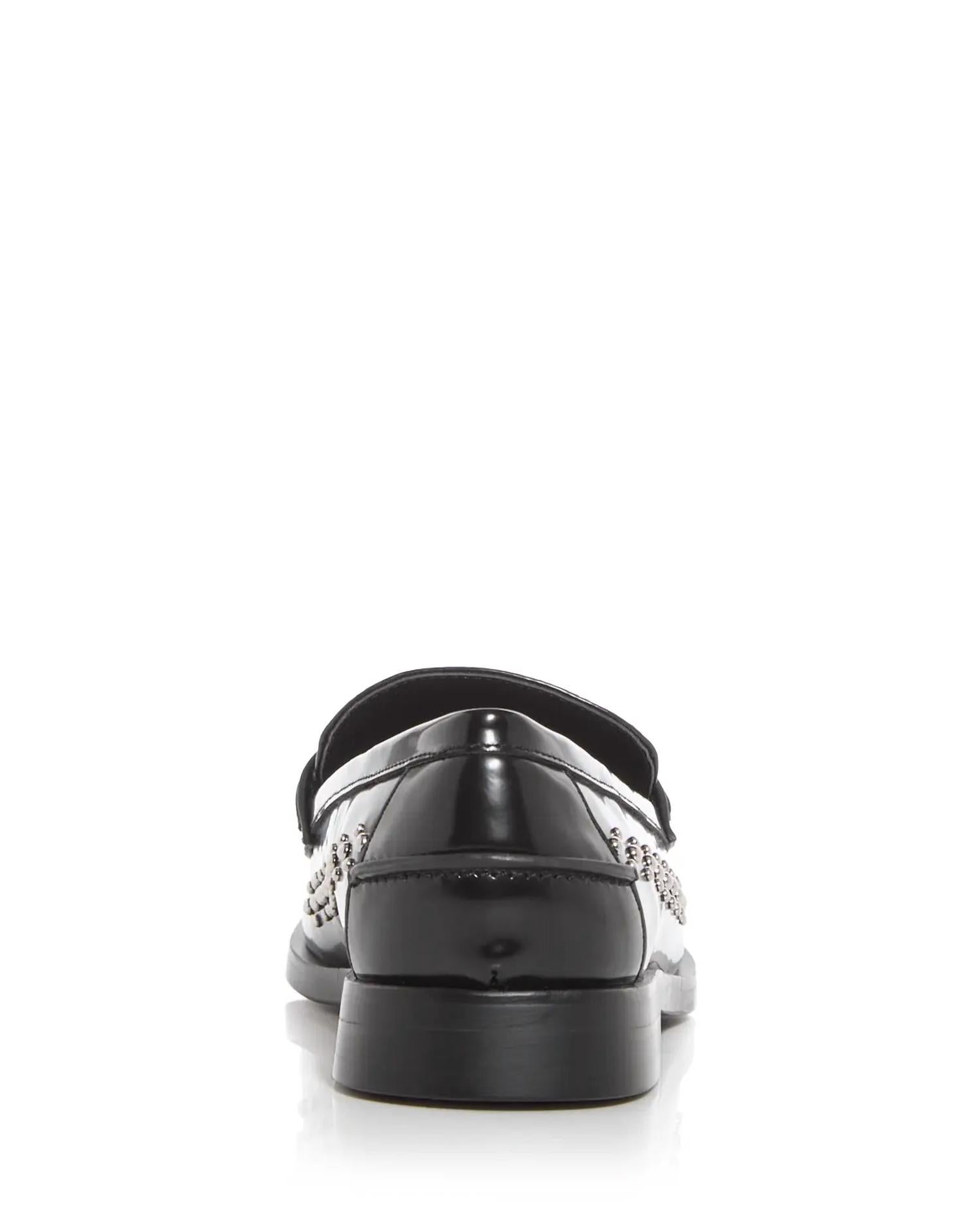 A preppy yet feminine take on the classic loafer. Step into elegance with the Women's Embellished Penny Loafer by AQUA, designed for both workwear and evening events. These almond-toe flats feature a sophisticated stitched moc detail and a slip-on design, adorned with chic allover metal bead embellishments. Constructed with a patent leather finish, the synthetic upper, lining, and sole ensure both style and comfort. Ideal for the spring season, these loafers offer a flat heel for effortless wear in sleek black.