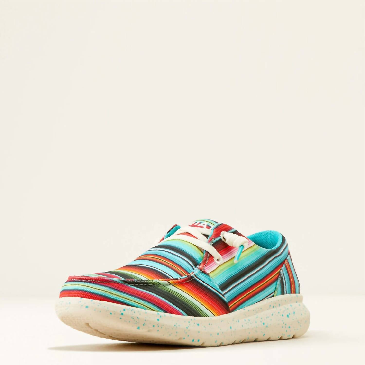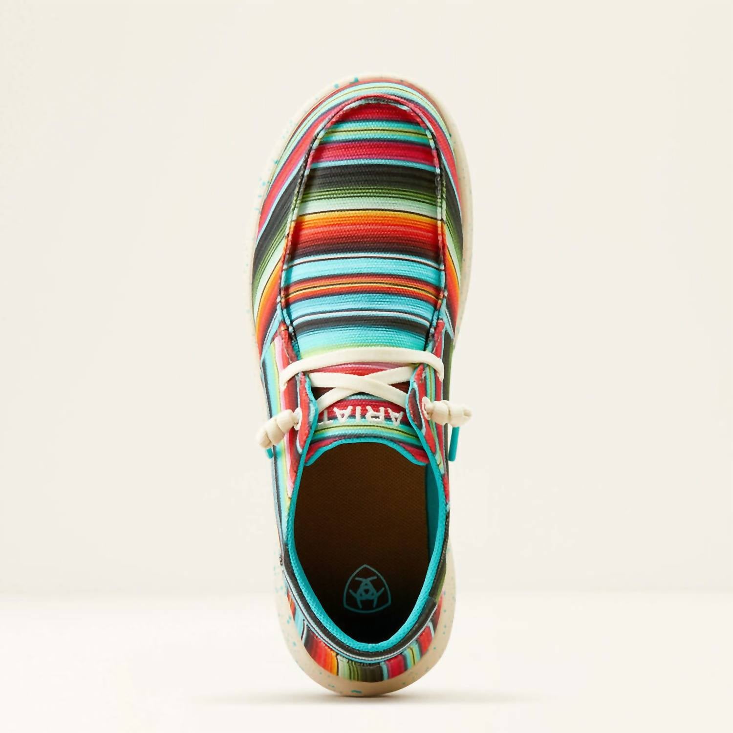 A preppy yet feminine take on the classic loafer. Experience comfort and style with the Men's Hilo Shoes by ARIAT, perfect for your summer travels. These flats, designed with a flat heel and a trendy '90s flair, feature a striking serape pattern that adds a vibrant touch to your look. The shoes boast a round toe shape, ensuring a comfy fit ideal for long adventures. Make these your go-to shoes for any casual occasion, and enjoy a blend of ease and fashion.