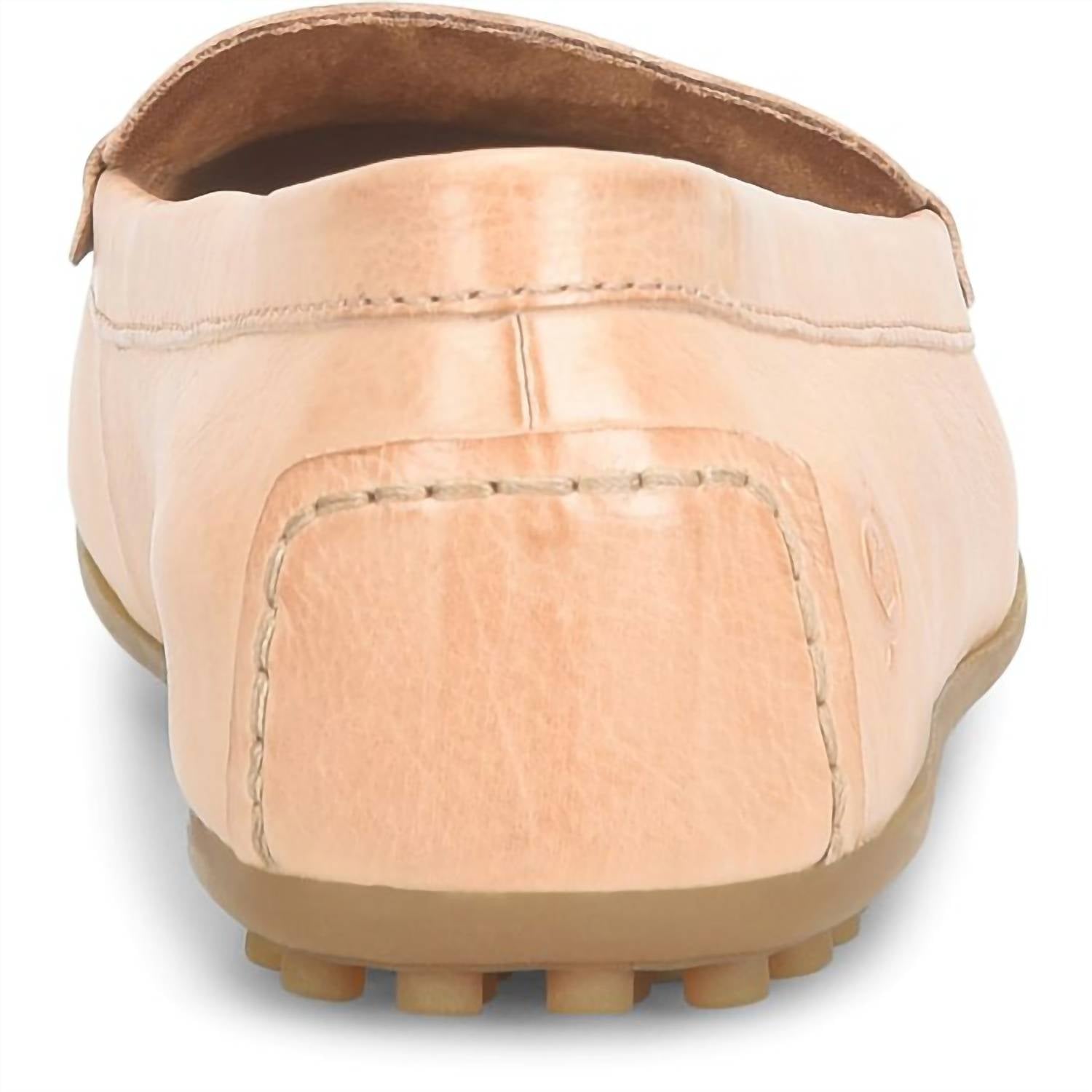 A classic loafer that is both comfortable and polished. Discover the Women's Finley Loafers by Born, blending timeless style with ultimate comfort in Natural color. Crafted with an Italian soft hand-finished leather upper, these flats feature a breathable soft micro suede lining and a removable footbed for enhanced comfort. The high traction flexible rubber outsole ensures stability, while the 2-Way Opanka handcrafted construction provides durability. Heel Height: 0.5 inch. Designed for women, these leather loafers are perfect for everyday elegance.