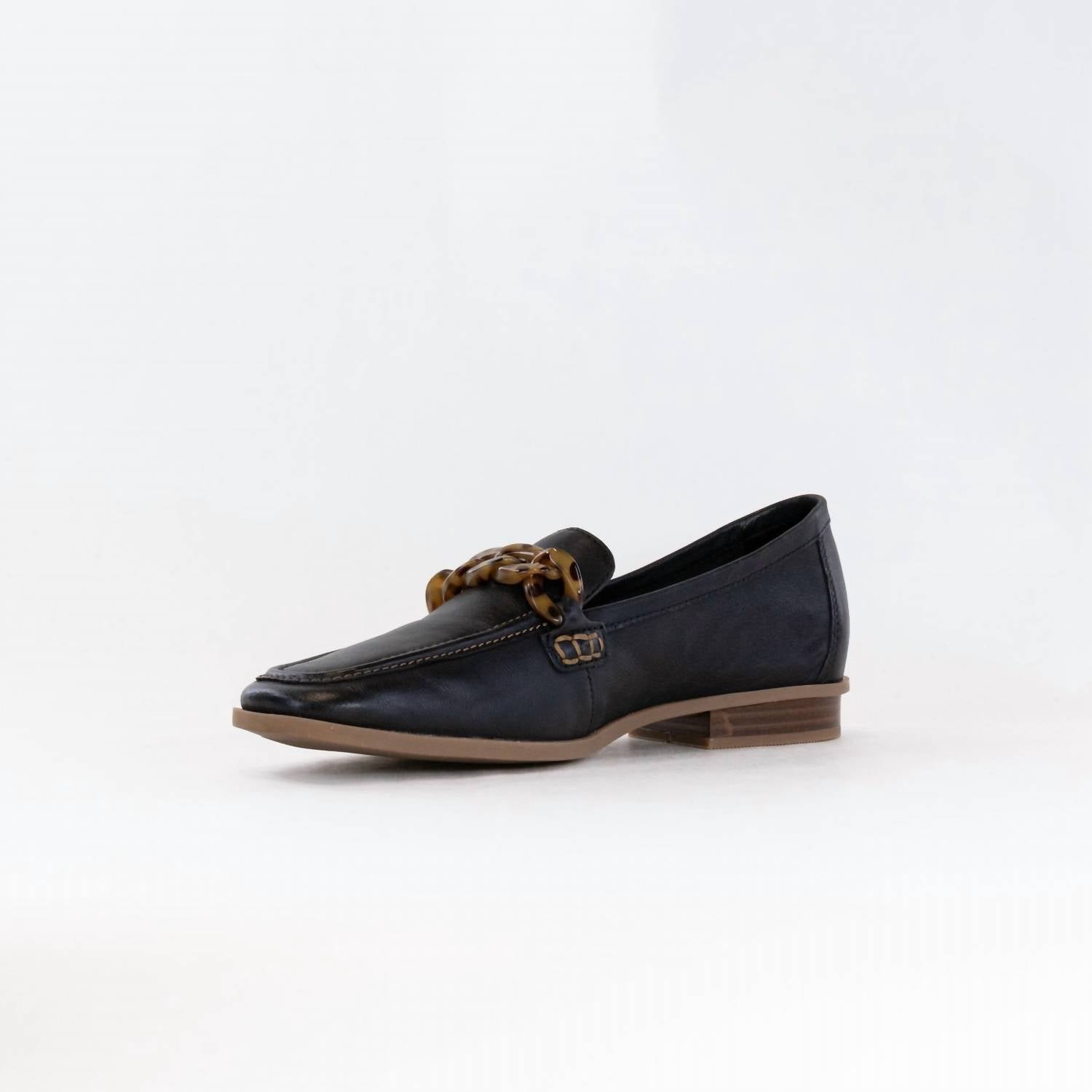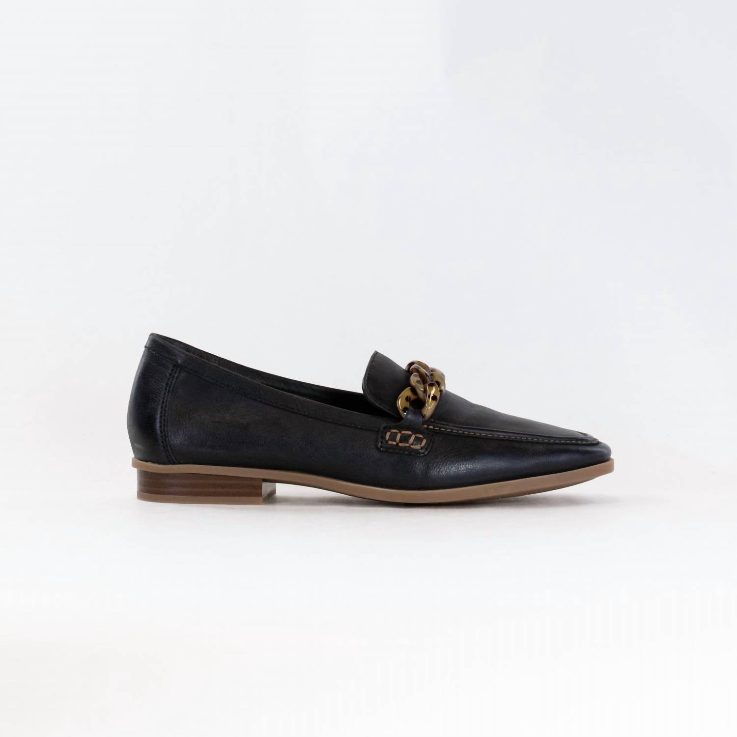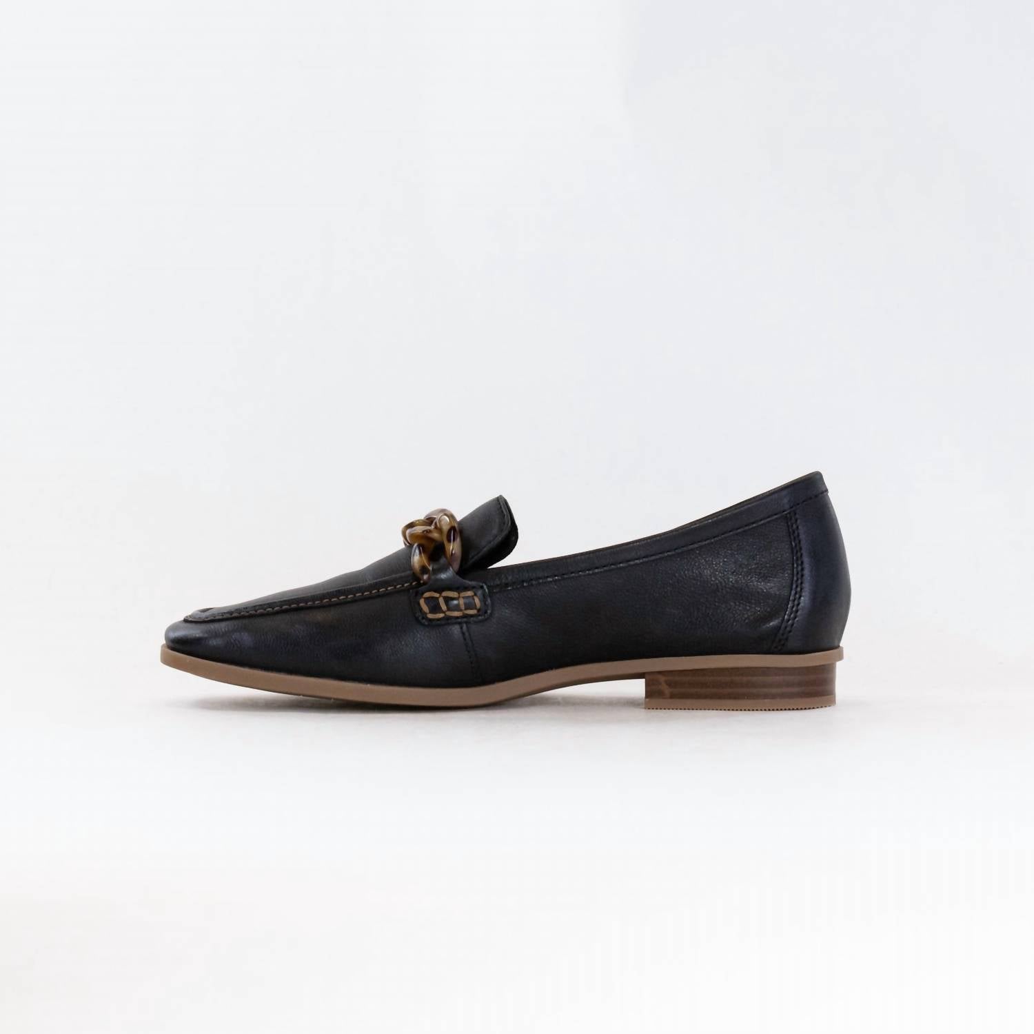 A preppy yet feminine take on the classic loafer. Introducing the Women's Sarafyna Iris Shoes by Clarks, perfect for smart-casual dress codes with a chic black leather upper. These loafers feature a flat heel with a 20mm height, a pointed toe shape, and on-trend chain embellishment. The Contour Cushion footbed ensures comfort with every step, while the breathable leather sock and flexible TR outsole offer excellent support and grip. Responsible craftsmanship meets modern style in this elegant workwear staple.