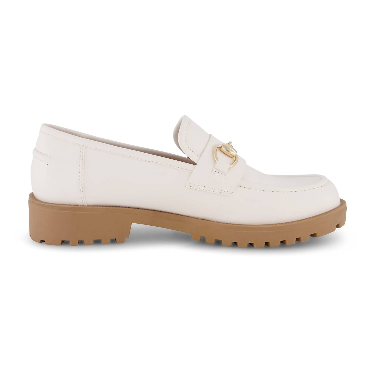 A classic loafer that is both comfortable and polished. Step into style and comfort with the Cushionaire Women's Romeo Chunky Loafers, a must-have in cream for the modern woman. Designed with a chic gold chain and a bold lug sole, these loafers showcase a round toe shape and a flat block heel under 1 inch, making them perfect for both office and casual settings. They feature a memory foam insole for hours of cushioned support and a durable slip-resistant outsole. Ideal for summer workwear and evening events, these loafers ensure practicality and elegance for any occasion.