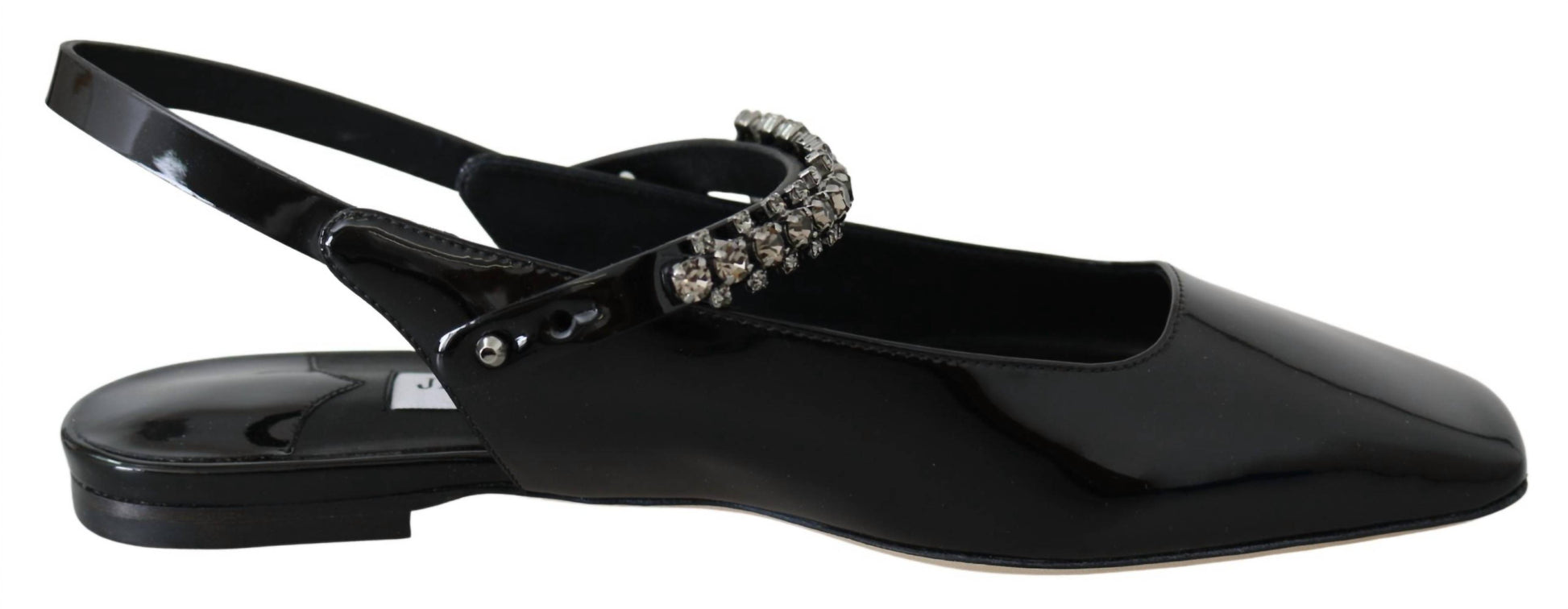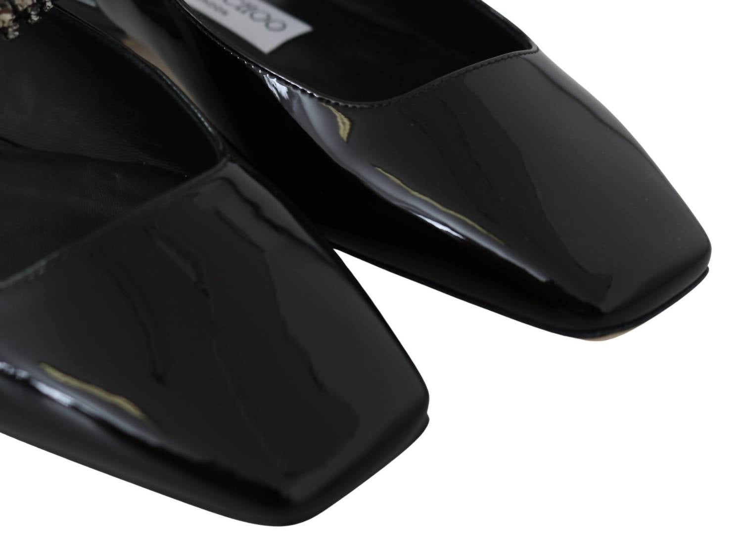 A preppy yet feminine take on the classic loafer. Introducing the Women's Mahdis Flat Shoes by Jimmy Choo, a stunning addition to any footwear collection. These flats feature a chic squared closed toe design and a crystal strap for a touch of sparkle. Crafted from 100% patent leather, they are perfect for spring outings. Enjoy the luxury of Jimmy Choo with every step in these elegant flat shoes.