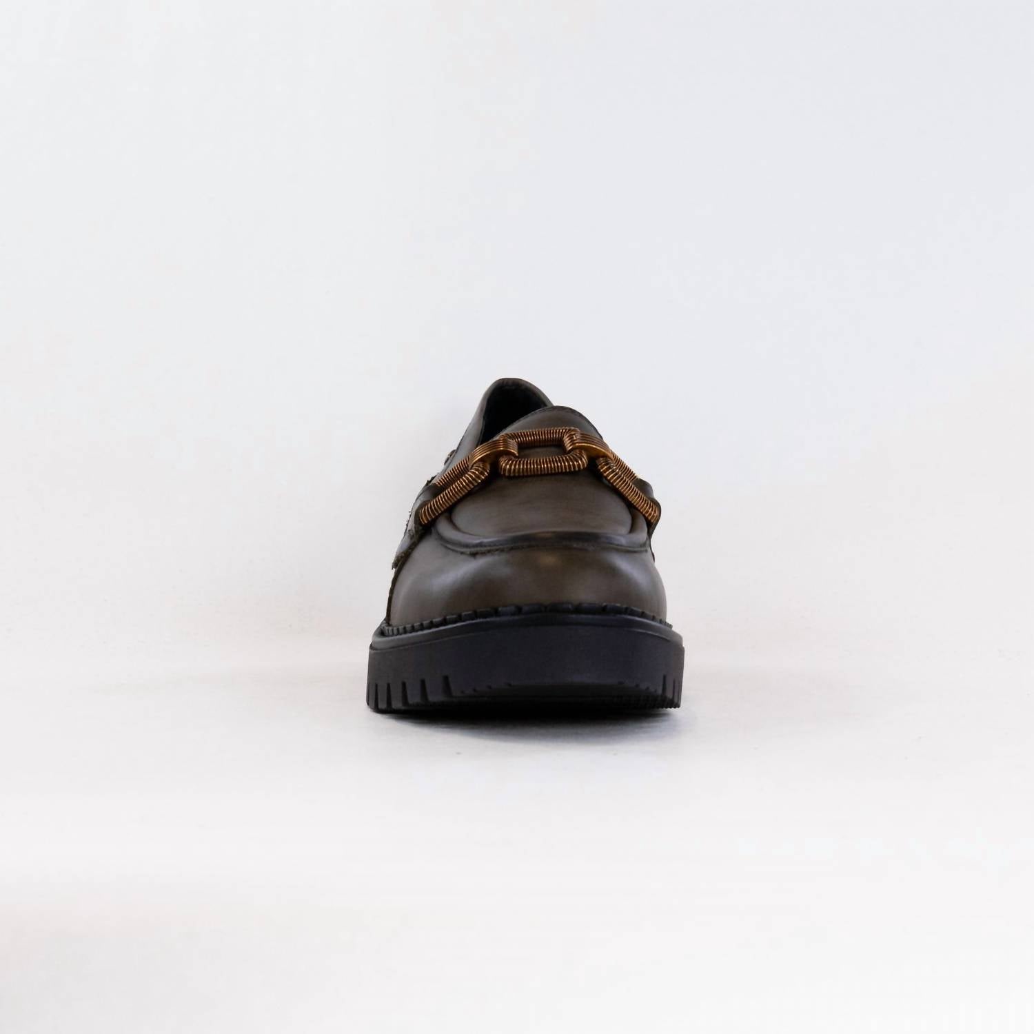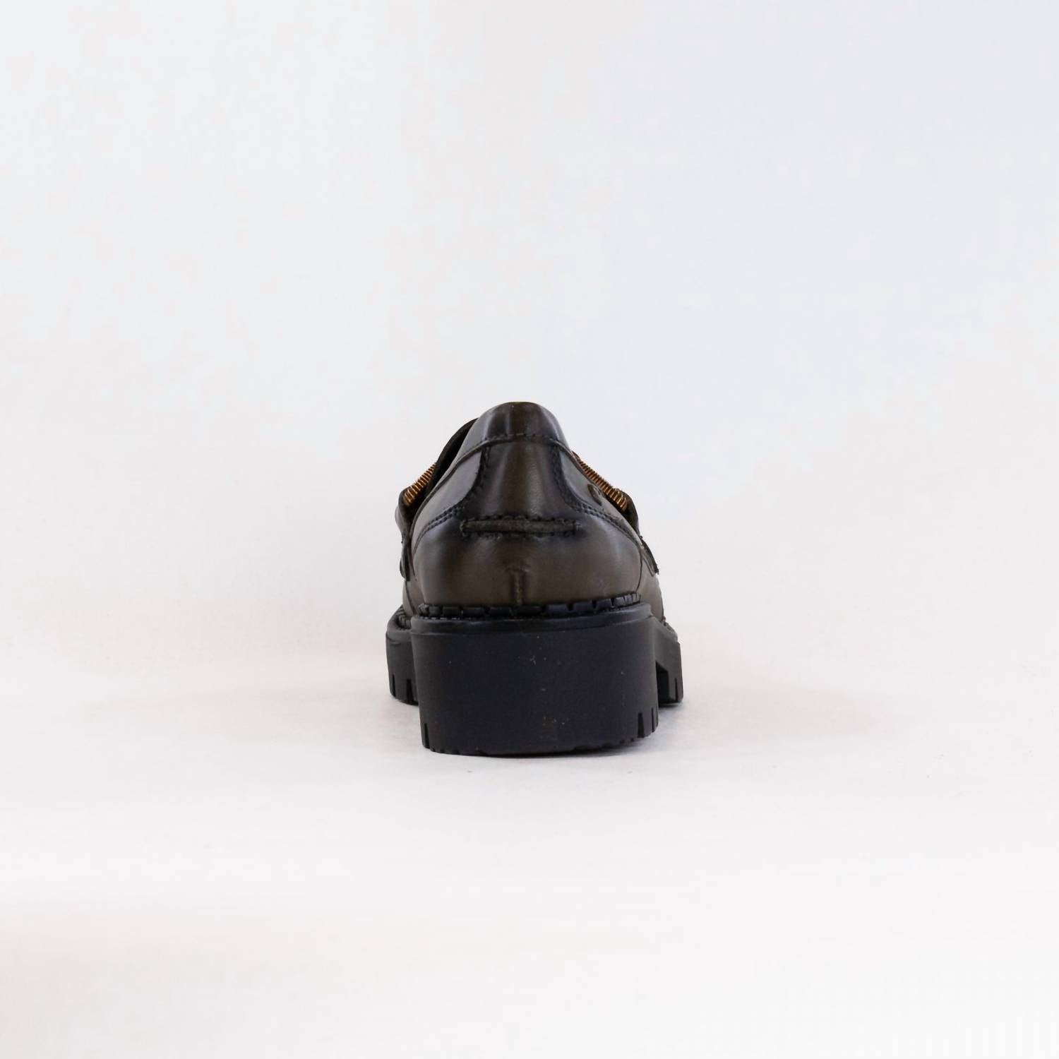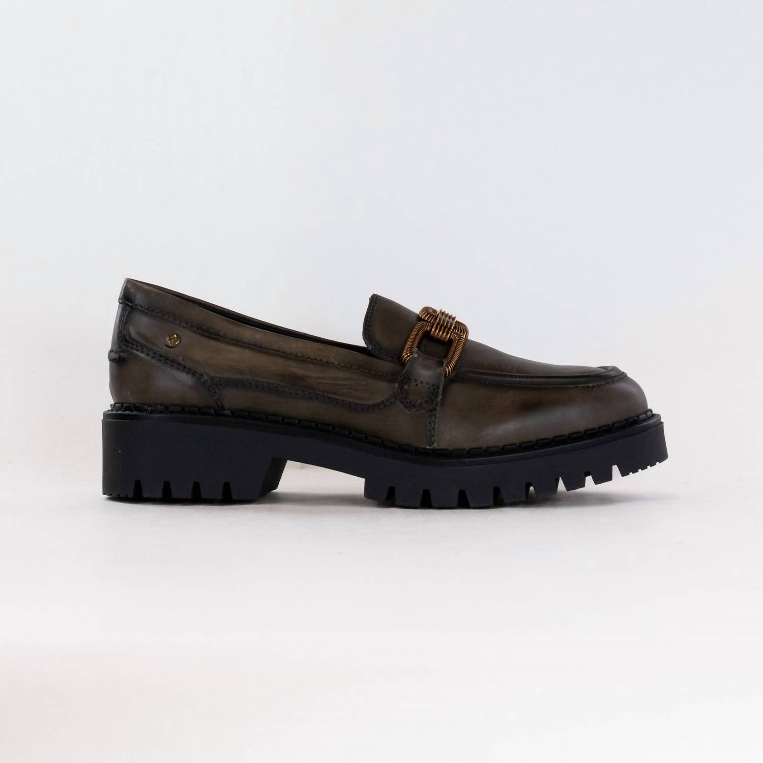 A classic loafer that is both comfortable and polished. Step into style with the Women's Aviles Loafer by PIKOLINOS, crafted in an elegant aloe hue. These trendy loafers feature a unique thick sole and a decorative buckle, offering a minimalist touch perfect for a dinner party or spring outing. Made with an upper of 100% calfskin leather and lined with 100% pigskin leather, they ensure comfort with their extra-light sole and cushioned insole. With a round toe and a low block heel of 1.5 inches, these loafers are your ideal ally for basic looks.