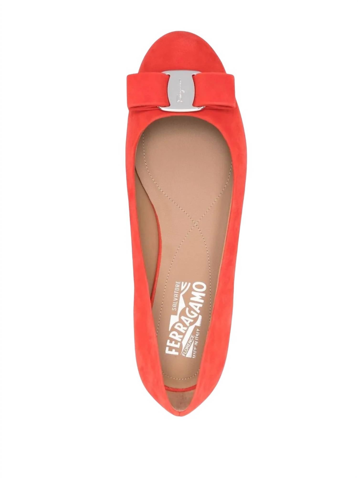 A preppy yet feminine take on the classic loafer. Step into elegance with the Women's Logo-plaque Ballerina Shoes by Salvatore Ferragamo. These slip-on shoes are crafted from candy apple red leather and feature a silver-tone logo plaque and delicate bow detailing. Designed with a round toe and a flat leather sole, this sophisticated pair ensures comfort and style, perfect for a dinner party. Composition: 100% Calf Leather for the sole, outer, and lining. Made in Italy.