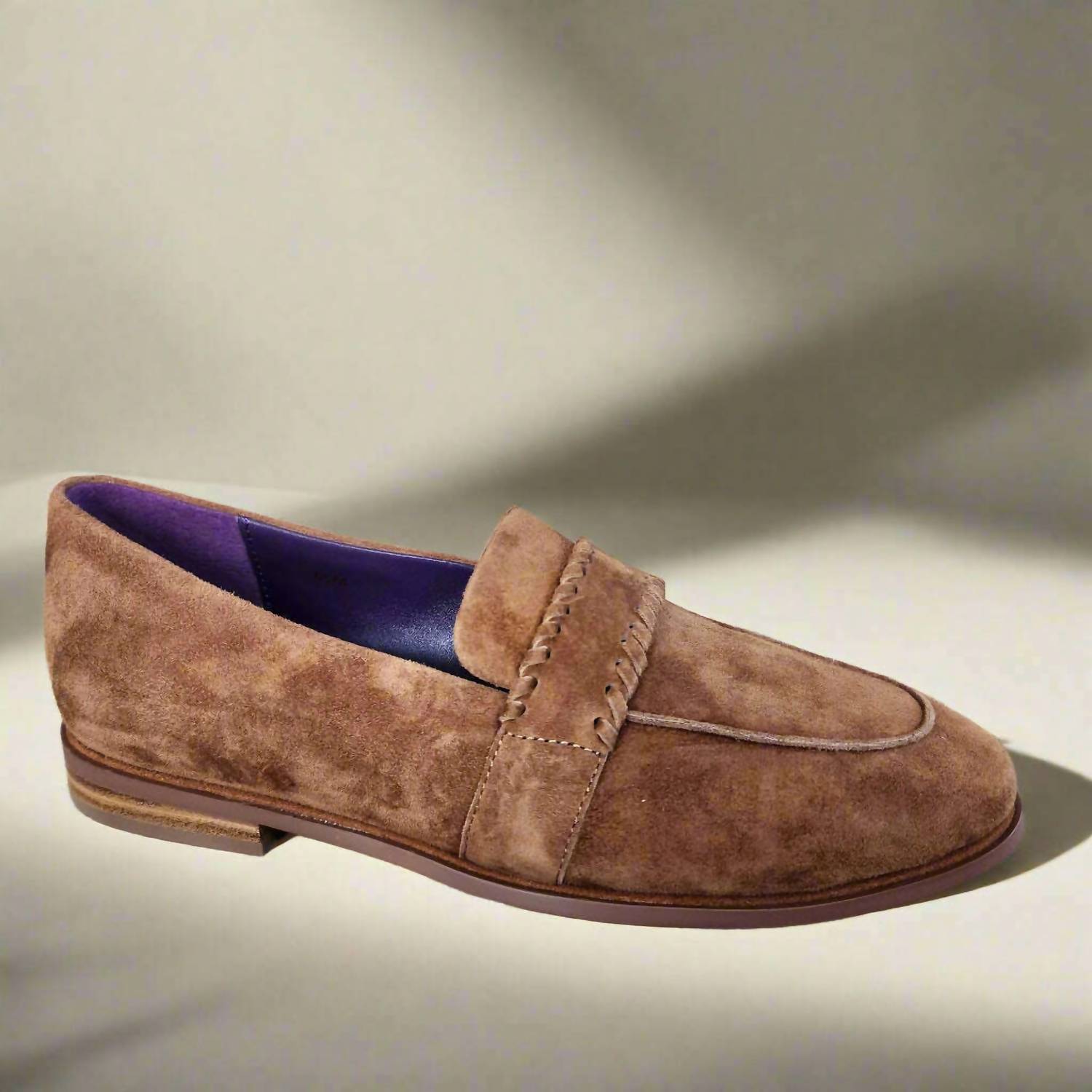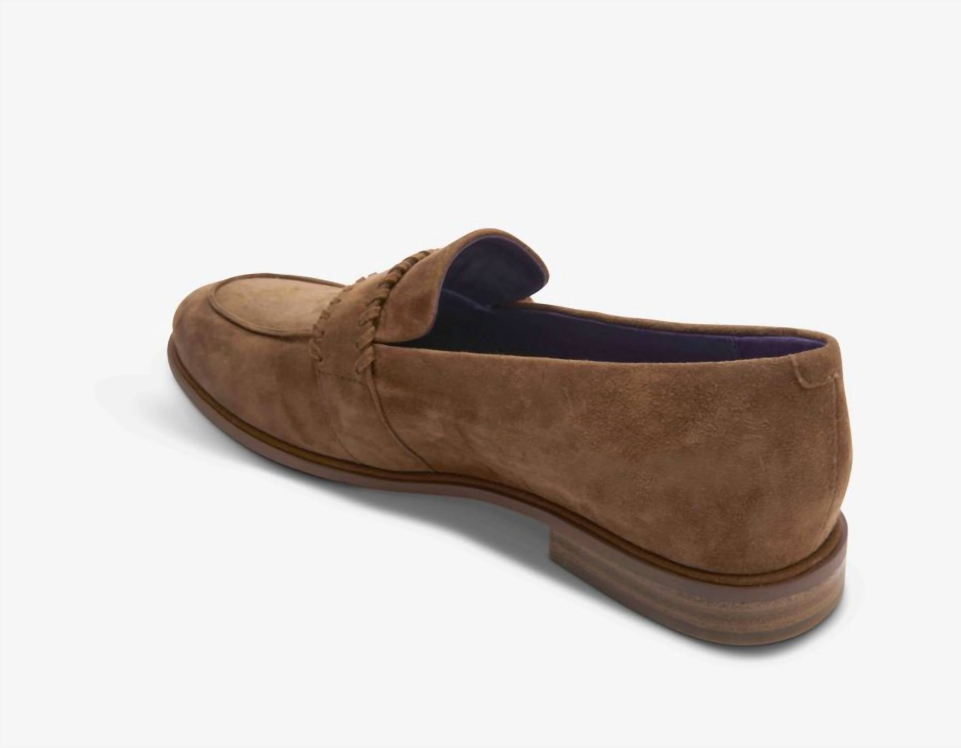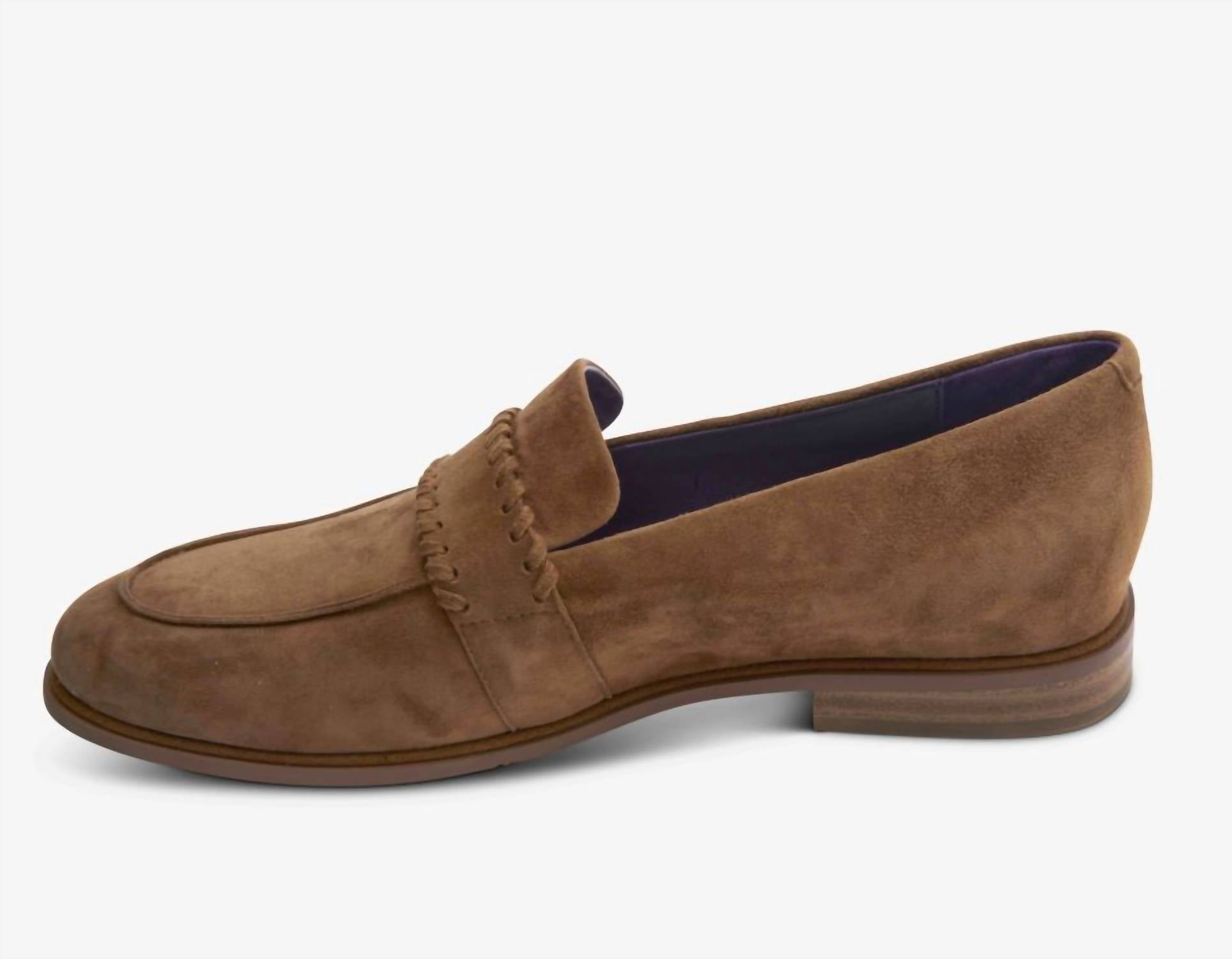 Loafers so versatile you can wear them with just about anything. Elevate your style with the Women's Abbra Suede Loafers by VANELi, crafted in luxurious Cuoio Suede. These loafers feature a chic pointed toe and a whipstitched keeper strap for an elegant touch. With a comfortable flat sole and a subtle 0.75-inch block heel, they are perfect for holiday parties and exude a boho chic trend ideal for the spring season. Enjoy unparalleled comfort with a padded insole, making them a sophisticated choice for both office and social gatherings.
