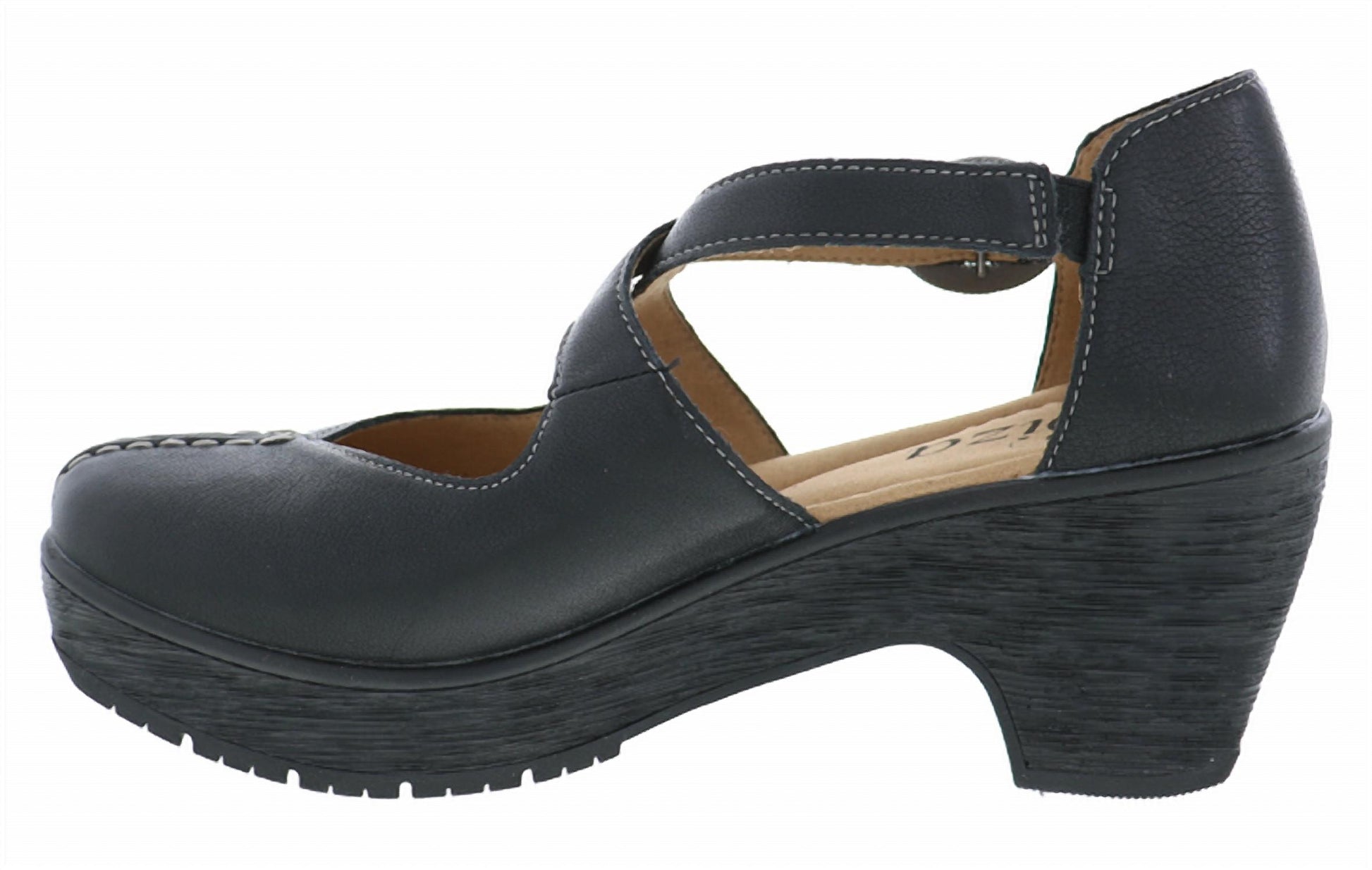 Timeless wedges that will be relevant season after season. Step into all-day comfort with the Shasta Shoes by Biza, a stylish wedge design crafted for women. These black Mary Jane shoes feature a premium leather upper and an adjustable Velcro instep strap for a perfect fit. Experience ultimate ease with its plush memory foam cushioned insole, soft microfiber lining, and shock-absorbing polyurethane midsole. Finished with a durable rubber outsole, this imported style boasts a 2.75-inch wedge heel height, perfect for your everyday adventures.