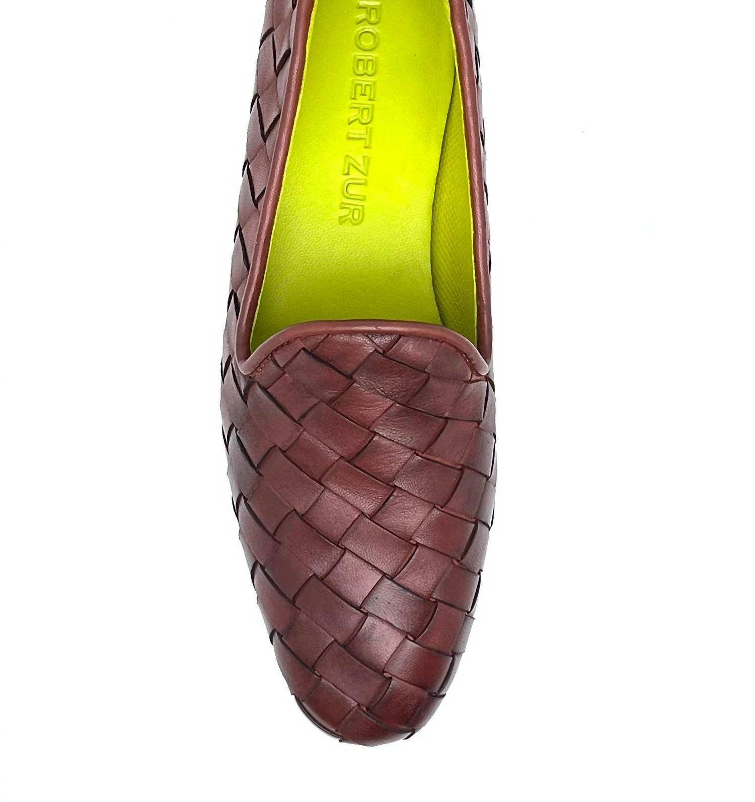 Loafers so versatile you can wear them with just about anything. Introducing the Women's Alyssa Woven Loafer by Robert Zur, offering a stylish take on classic sophistication in a vintage luggage hue. Crafted with a soft woven leather upper and a cuddly leather-lined interior, these loafers ensure luxurious comfort with a well-cushioned footbed. The flexible leather outsole provides durability and excellent support for all-day wear. With a subtle 0.5" platform heel and a round toe shape, these loafers are perfect for adding a touch of elegance to your everyday ensemble.