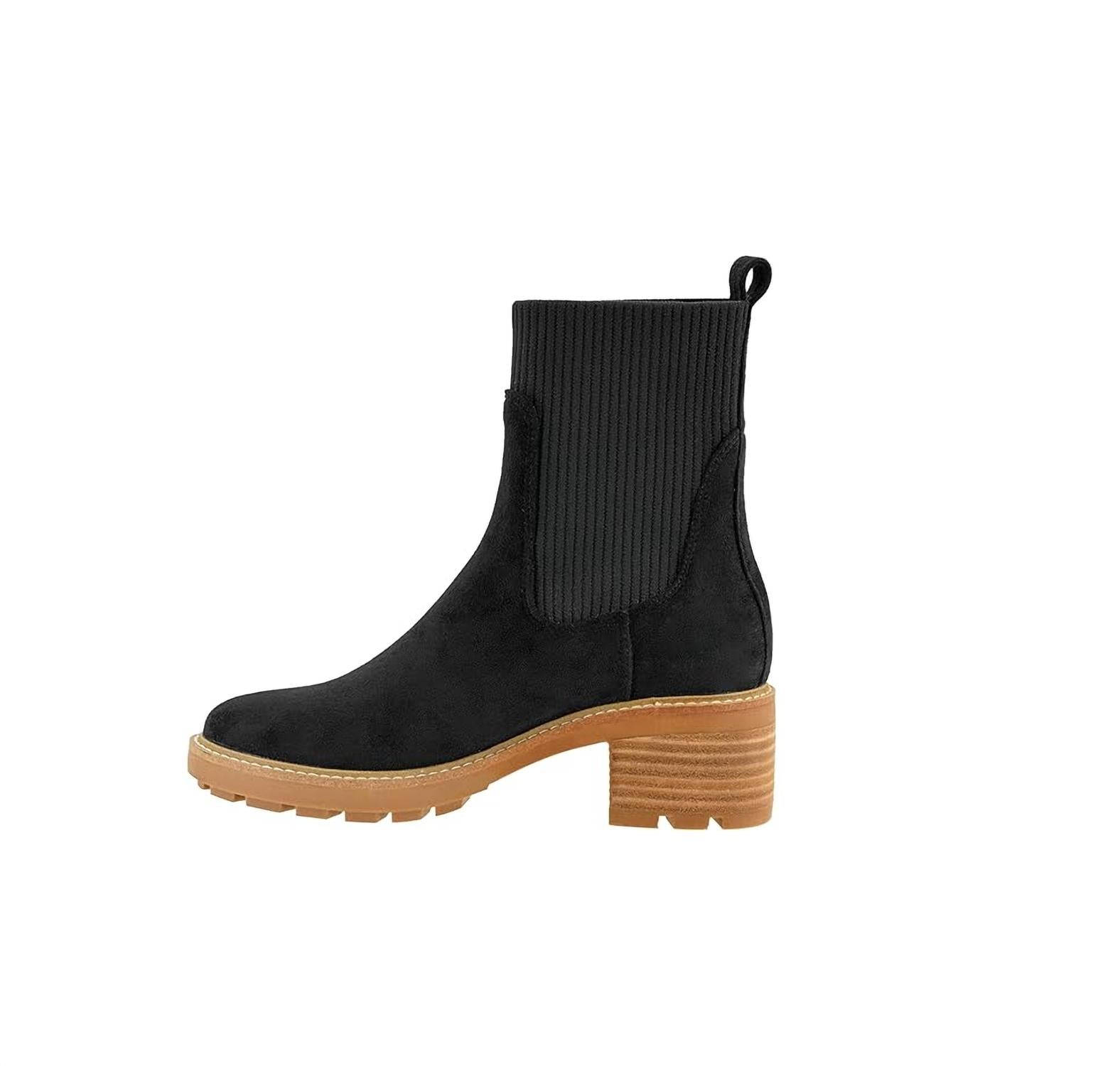 Say hello to the perfect, most versatile boot. The ankle height makes this style easily transition from day to night. Wear them with your favorite skinny jeans and tee for a more laid back look, or pair them with your favorite mini dress and jacket for a night out on the town. These boots feature a faux suede upper with a rubber sole and cushioned insoles for comfort. The stretchy sock-top upper provides a secure fit, and they have a pull-on design. The boots include a 2.75" heel and a 1" platform for added height.
