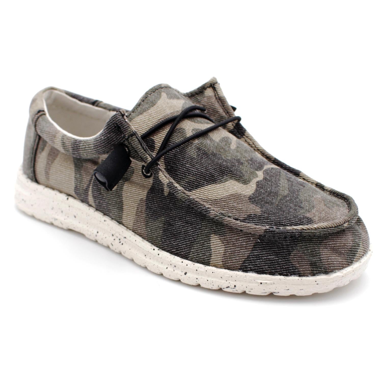 The slip-on Hola shoes feature durable and breathable cotton canvas uppers with a lace-up look. They offer a high-density footbed for added comfort, soft fabric linings, and a lightweight, ultra-light manmade outsole for everyday ease. The wide fit ensures all-day comfort.