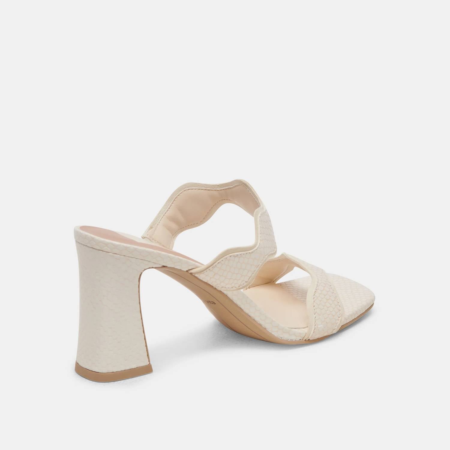 The perfect height for day to night. Step into the spotlight with the Ilva Heels by Dolce Vita, designed to captivate with their sculptural block heel and scalloped straps. Crafted from sophisticated leather in a chic crème hue, these heels boast a high heel height of 3.2 inches, making them perfect for any party. The open toe design adds an elegant touch, while the water-based leather alternative sock and lining ensure comfort. Ideal for women seeking a statement-making addition to their wardrobe.