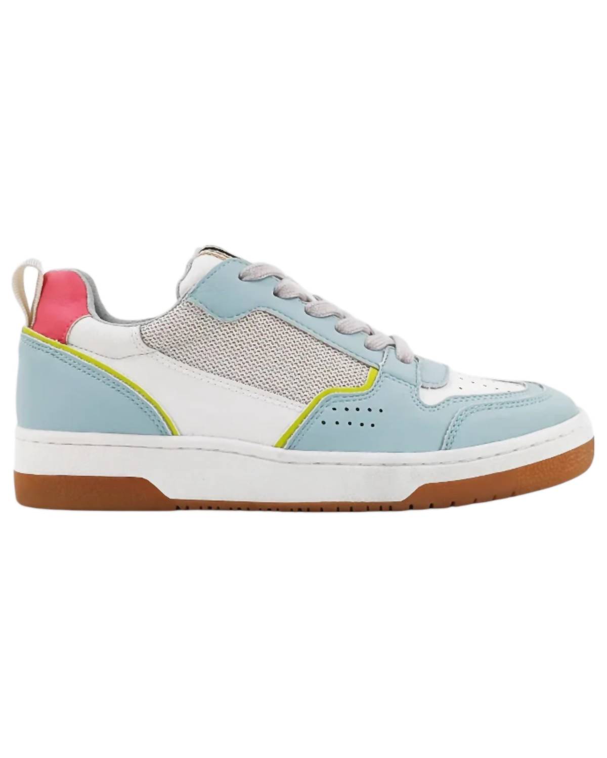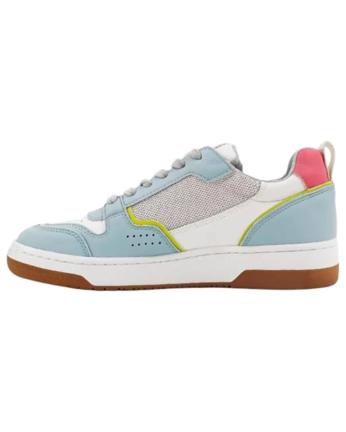 Get your daily steps in with these adorable sneakers. Step up your style game with the Women's Romi Sneakers by SHU SHOP, designed in a vibrant Aqua hue. These trendy low-top sneakers offer a striking '80s vibe, featuring a mix of bright-colored supple faux leather, suede, and mesh uppers. They sit on chunky rubber soles, ensuring both style and comfort with every step. Designed with a round toe and flat heel, these sneakers offer a medium width fit, making them perfect for the modern woman's wardrobe.