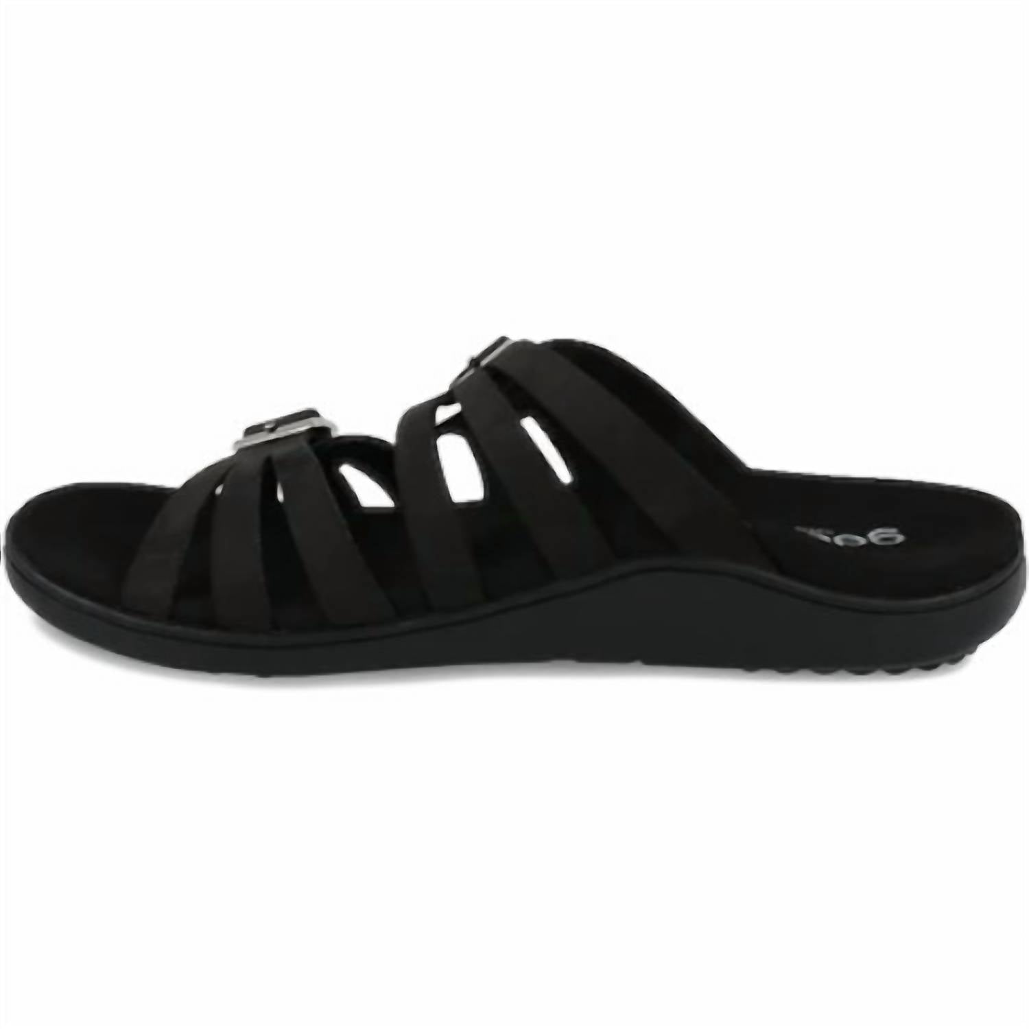 This sandal will take you from brunch to dinner and everything in between. Experience unparalleled comfort in sleek black. Designed with hassle-free adjustable straps and an open toe. Offer both style and functionality. Crafted with a protective deep heel cup and an ultra-soft EVA footbed. Ensure lasting support to keep you comfortable all day long.