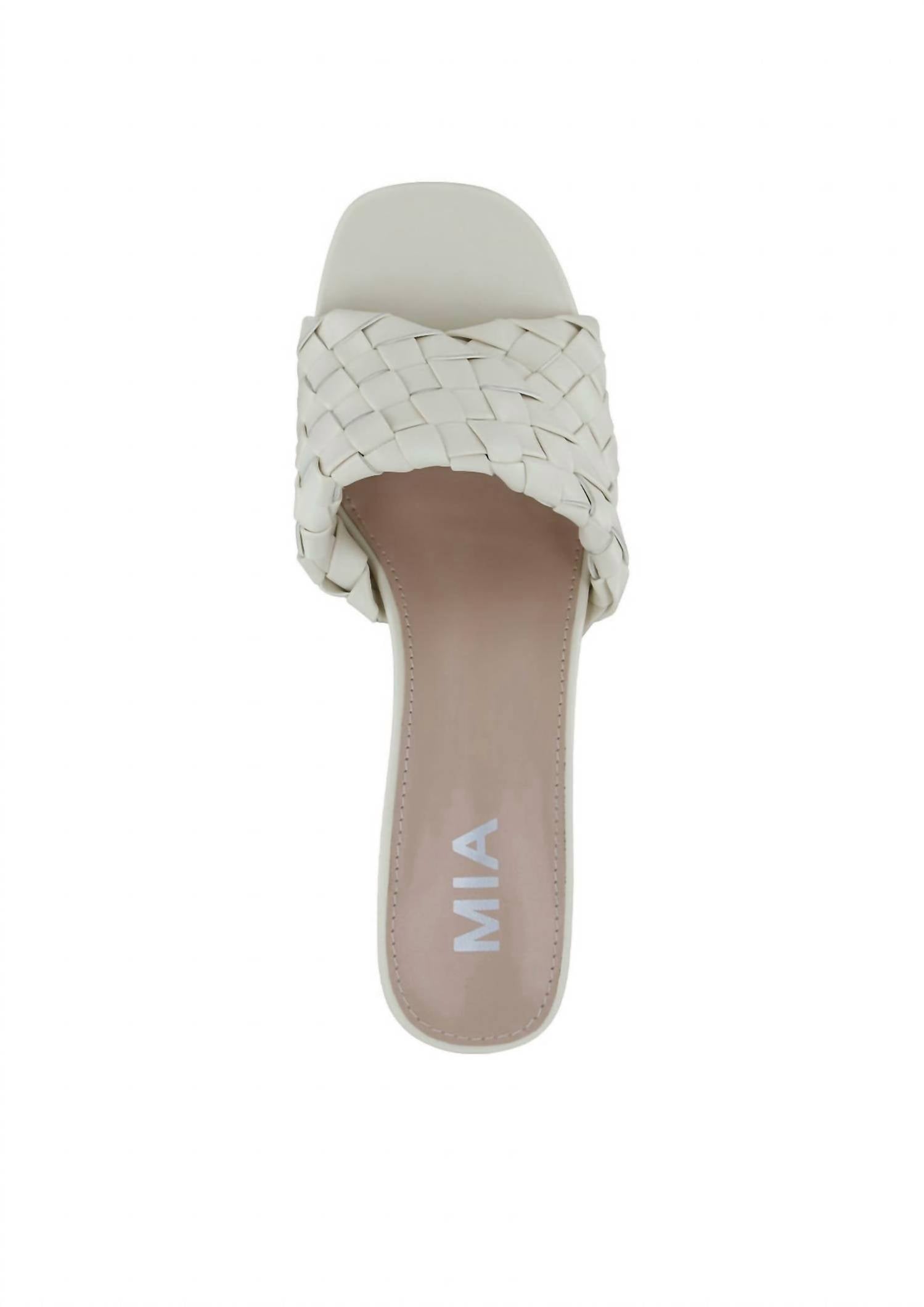 Pair these beauties with your favorite skinny jeans or dress for a night out on the town. Step out in style with the Women's Minna Heel by MIA, crafted in elegant bone-colored faux leather. Elevate your look with a sophisticated 3.5-inch high block heel, complemented by an open toe design perfect for any occasion. This exquisite pair effortlessly combines fashion-forward design with comfort, ensuring you walk confidently wherever you go.