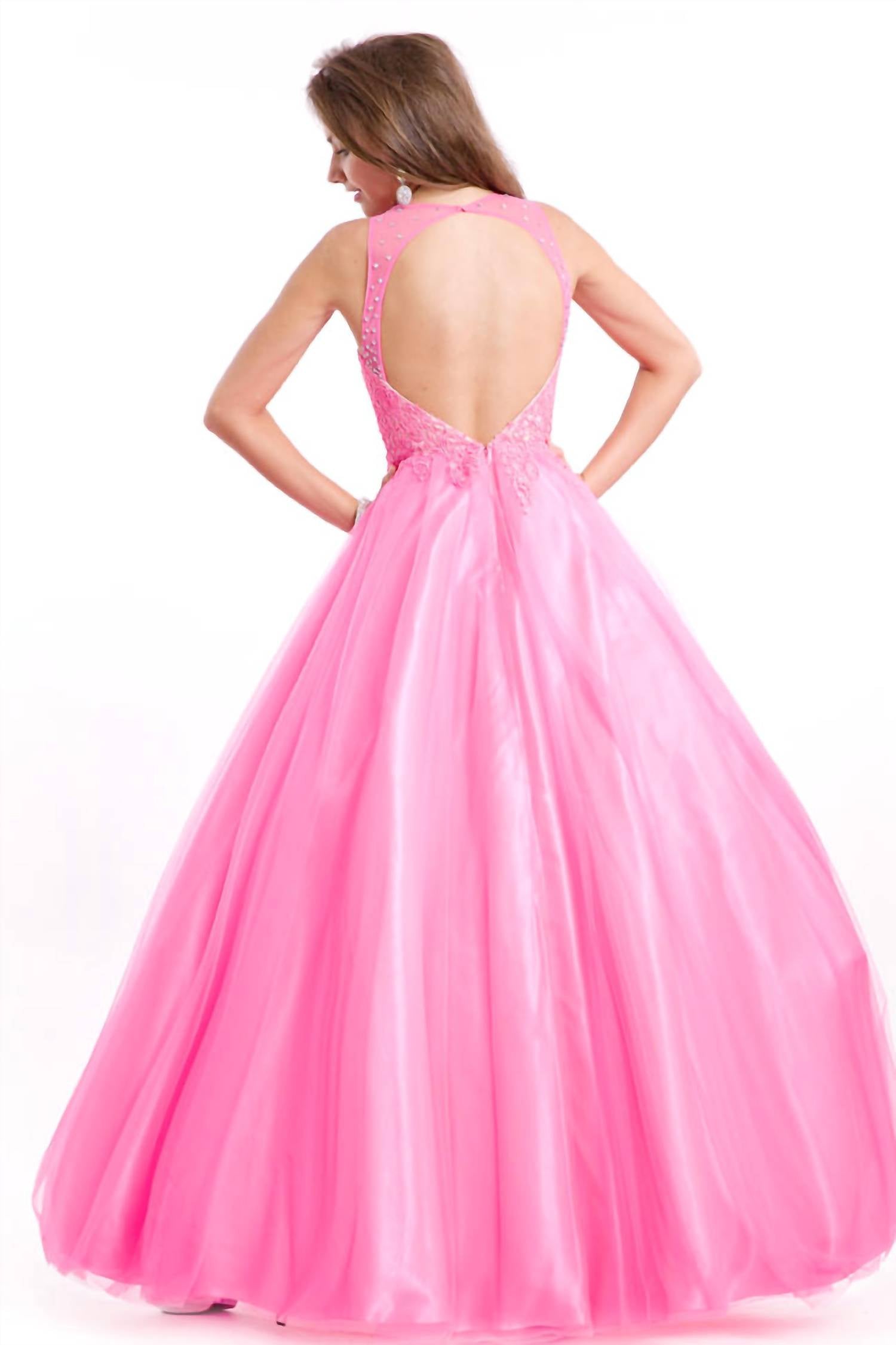 Just add a cute little clutch and a matching heel for the perfect event look. Elevate your prom look with the Sleeveless Open Back Ballgown 6522 by Rachel Allan, a striking piece in vibrant vanilla. This breathtaking gown features a sleeveless design with an open back, draped in luxurious lace and soft tulle, offering a beautifully patterned appearance. The full tulle skirt ensures a dramatic entrance, while the zip closure provides a secure fit. Perfect for making a lasting impression on your special night.