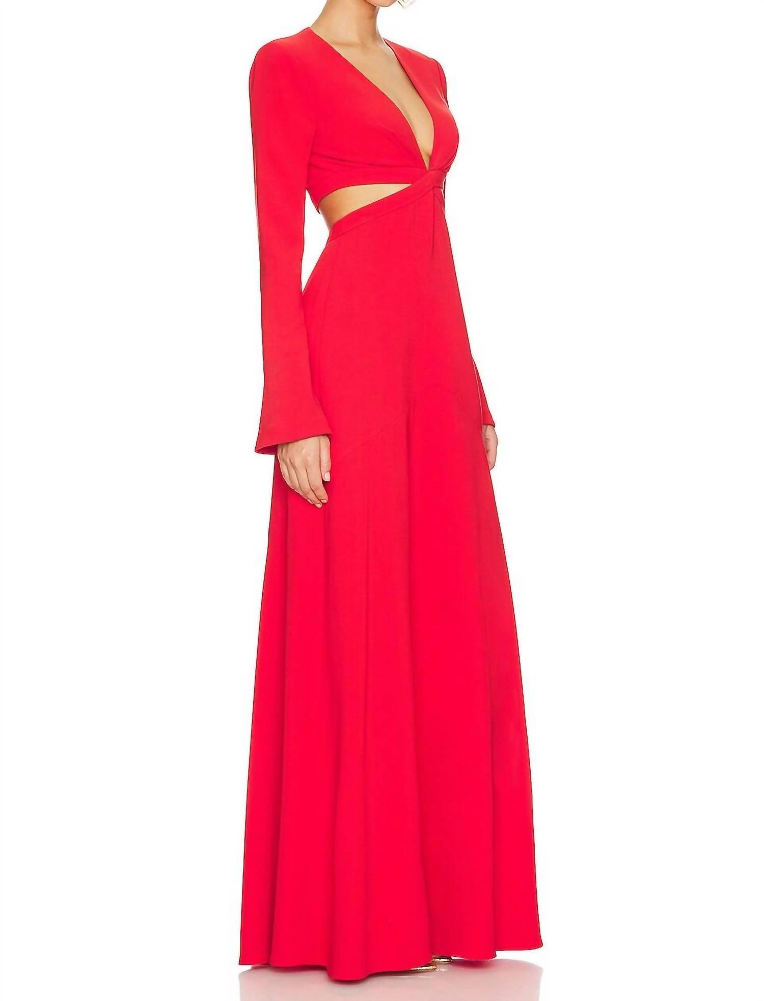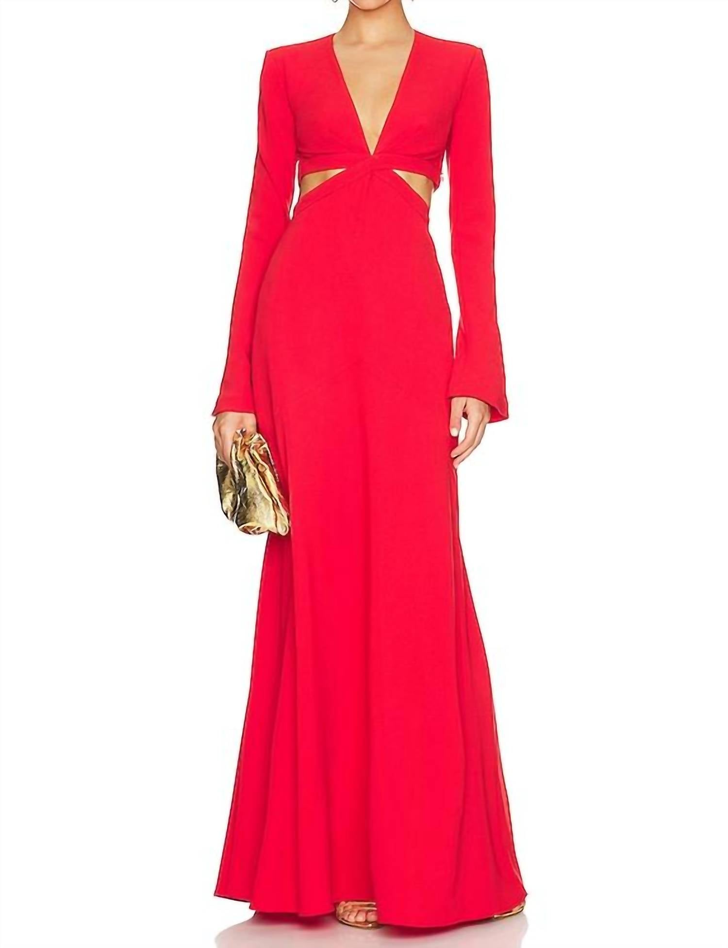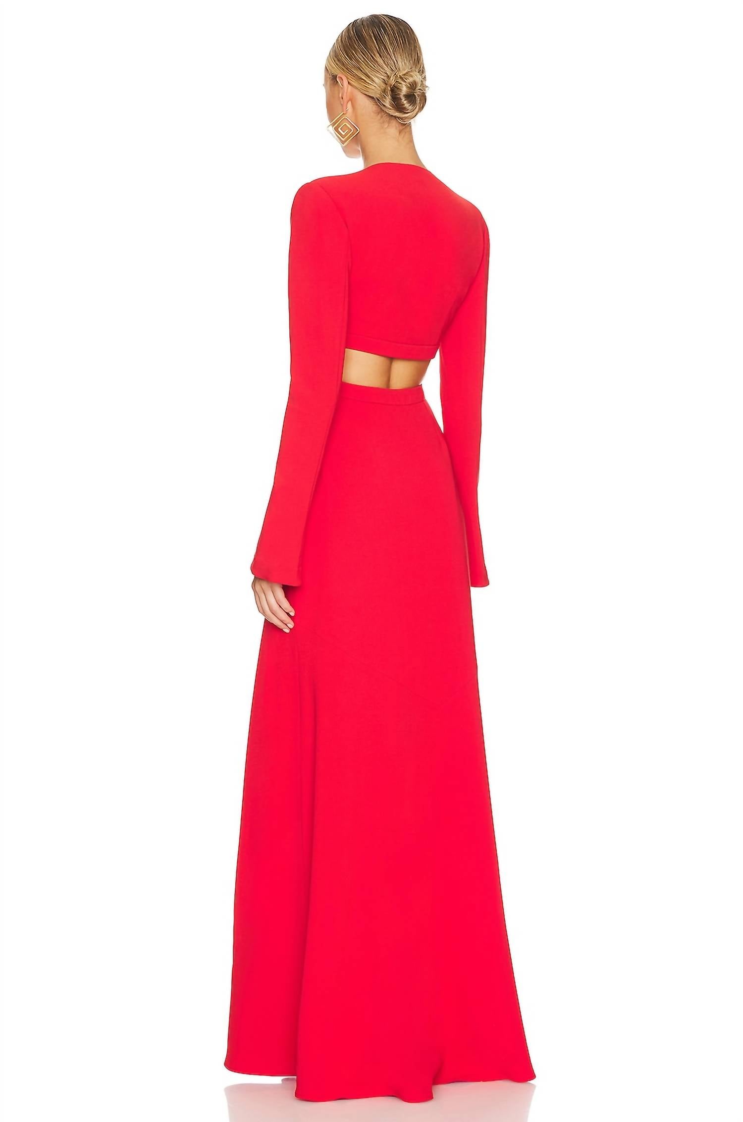Just add a cute little clutch and a matching heel for the perfect event look. This elegant dress features long bell sleeves and a plunging V-neckline, enhanced by padded shoulders and waist cut-outs. Crafted from crepe jersey fabric, its composition includes 70% triacetate, 30% polyester with a lining of 96% polyester and 4% elastane. Made in China, the dress offers a stylish A-line silhouette with a hidden side zipper closure and requires dry cleaning only.