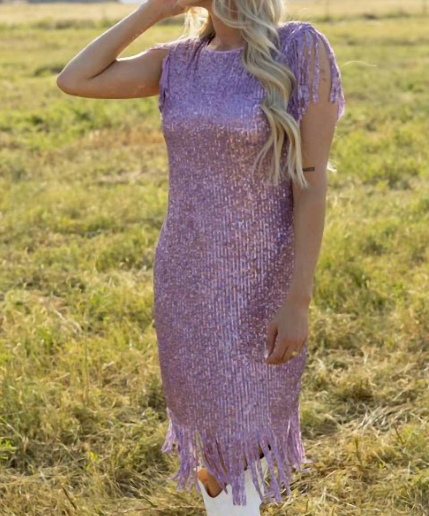 Turn heads in the cutest and most flattering evening dress. Introducing the Night Life Dress by Sterling Kreek, a stunning addition to your evening wardrobe in a captivating lilac hue. This shift dress features a sleeveless design crafted from 95% polyester and 5% spandex, offering both comfort and sparkle with its textured sequin finish. Its crewneck silhouette ensures an elegant fit for any evening event or prom. Care: Hand wash and lay flat to dry, no pockets for a seamless look.