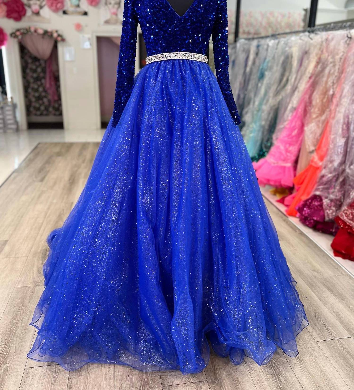 Just add a cute little clutch and a matching heel for the perfect event look. Step into elegance with the Velvet Sequin Long Sleeved Ball Gown from Ava Presley, perfect for making a royal impression at any prom. This long-sleeve gown features a luxurious velvet sequin bodice paired with a deep V-neckline, flowing into a glittering tulle skirt that exudes glamour. The A-line silhouette ensures a graceful fit while the zip closure provides ease and functionality. Designed for women who desire sophistication, this gown is a must-have for unforgettable occasions.