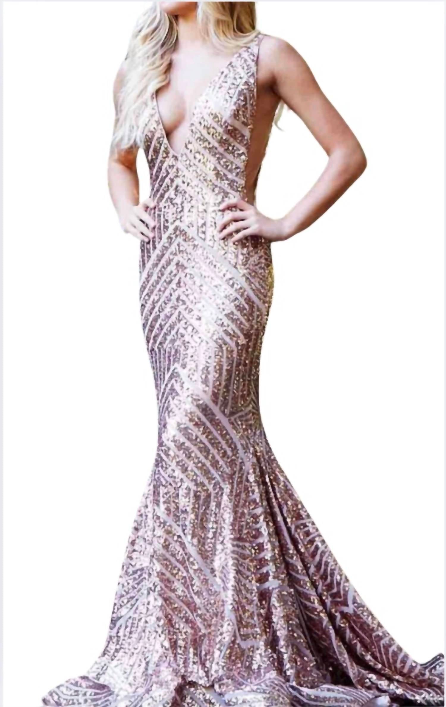 Turn heads in the cutest and most flattering evening dress. Sequin plundge gown