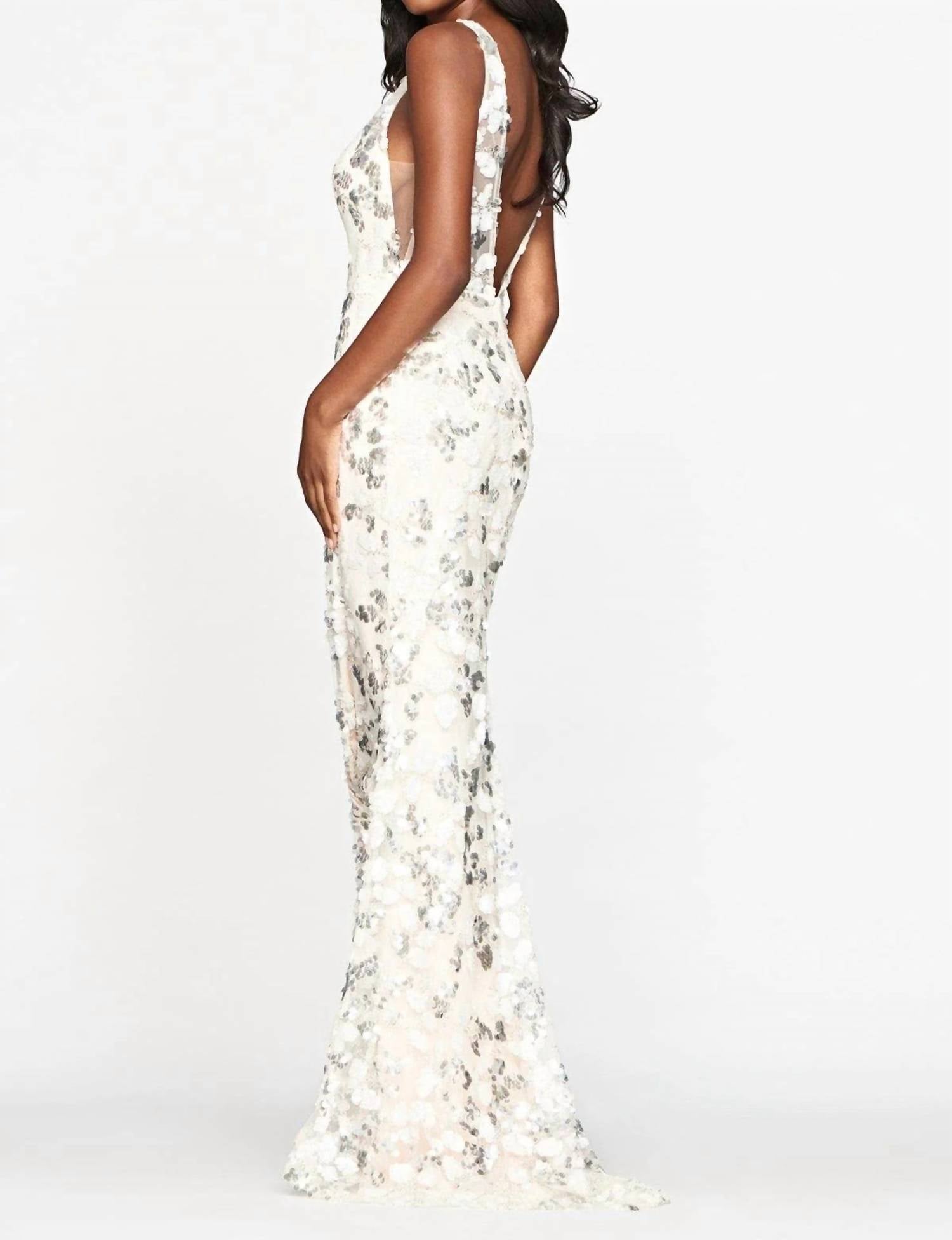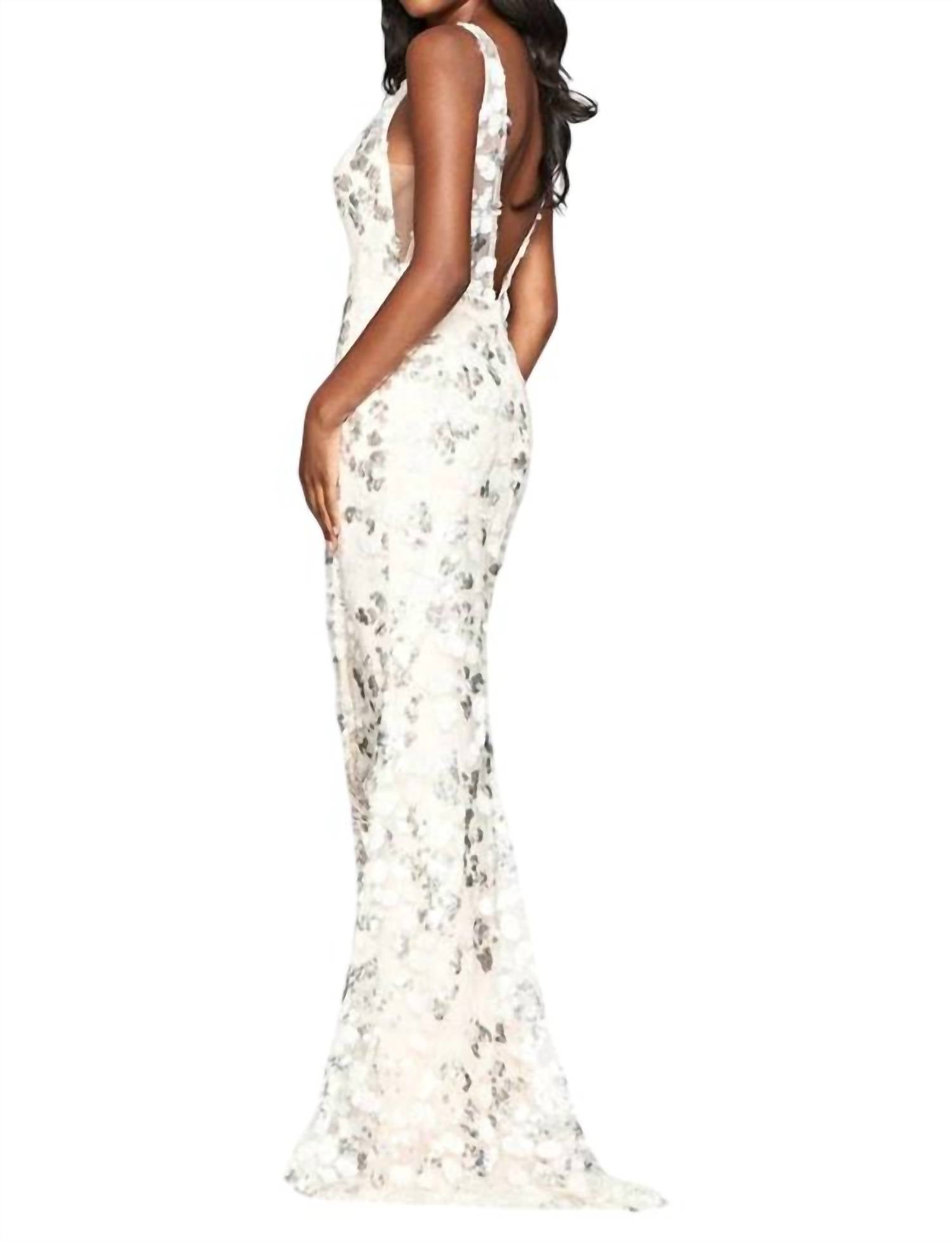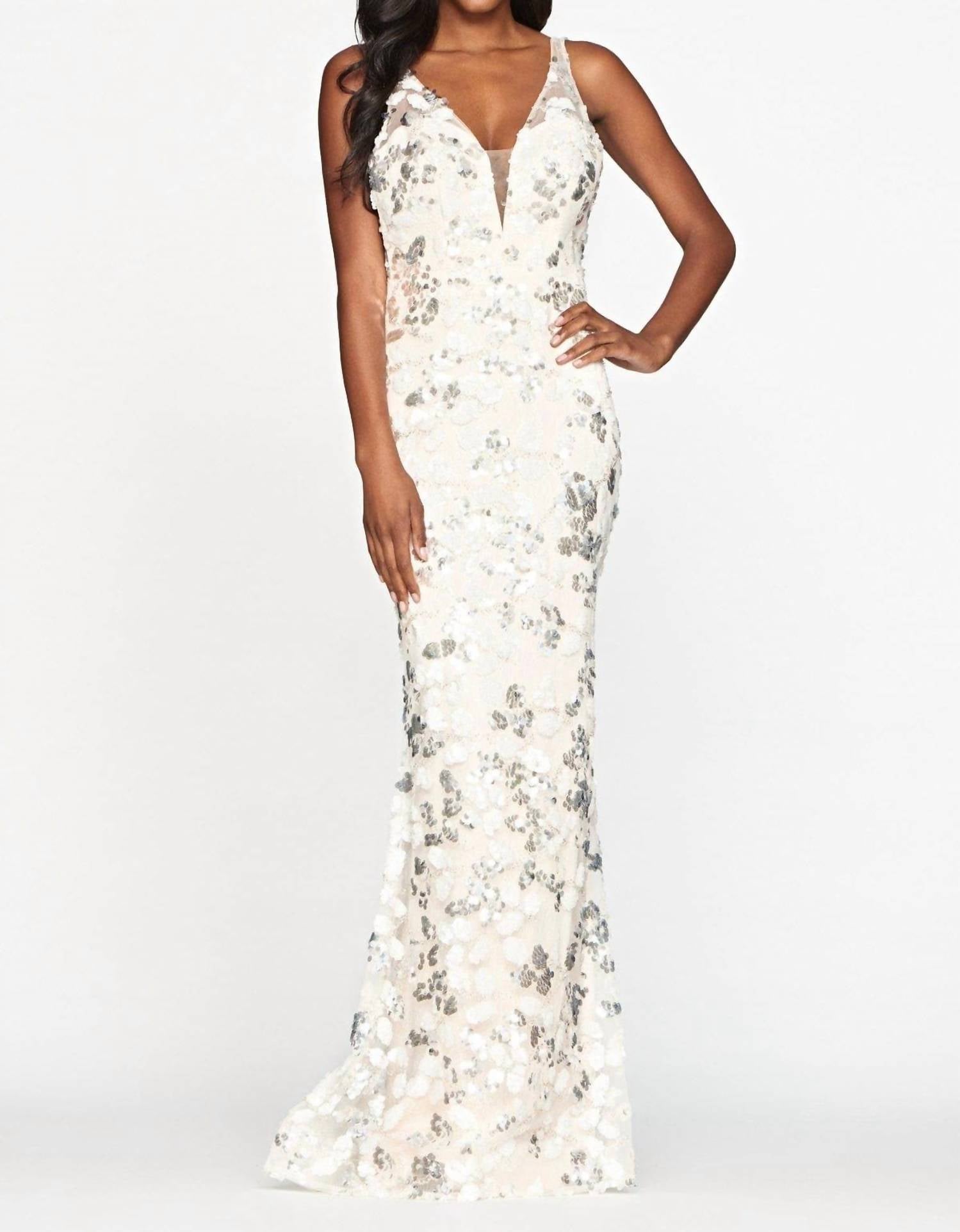 Faviana - Long V-Neck Sequin-Pattern Prom Dress
