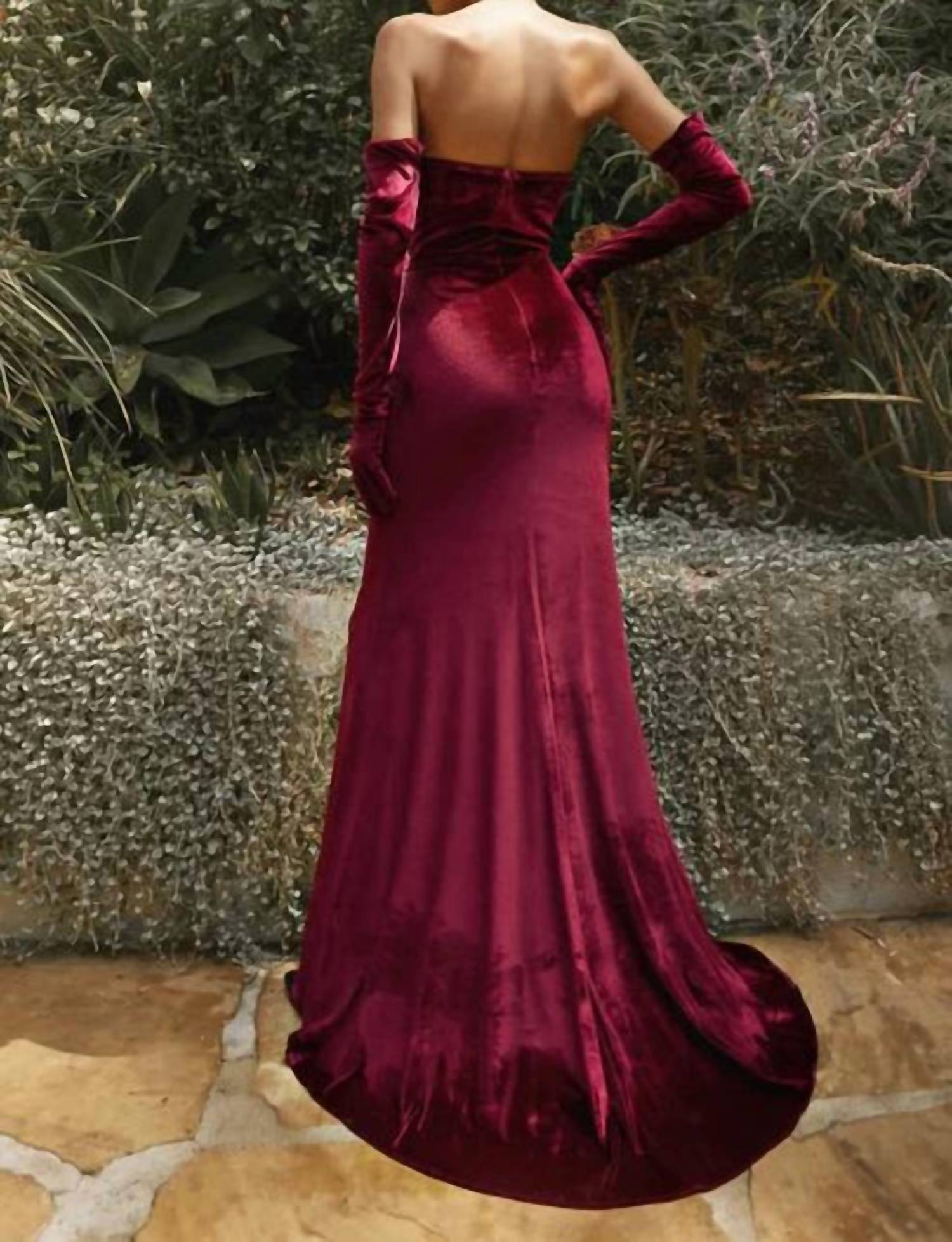 Ladivine - Velvet Sweetheart Gown With Gloves