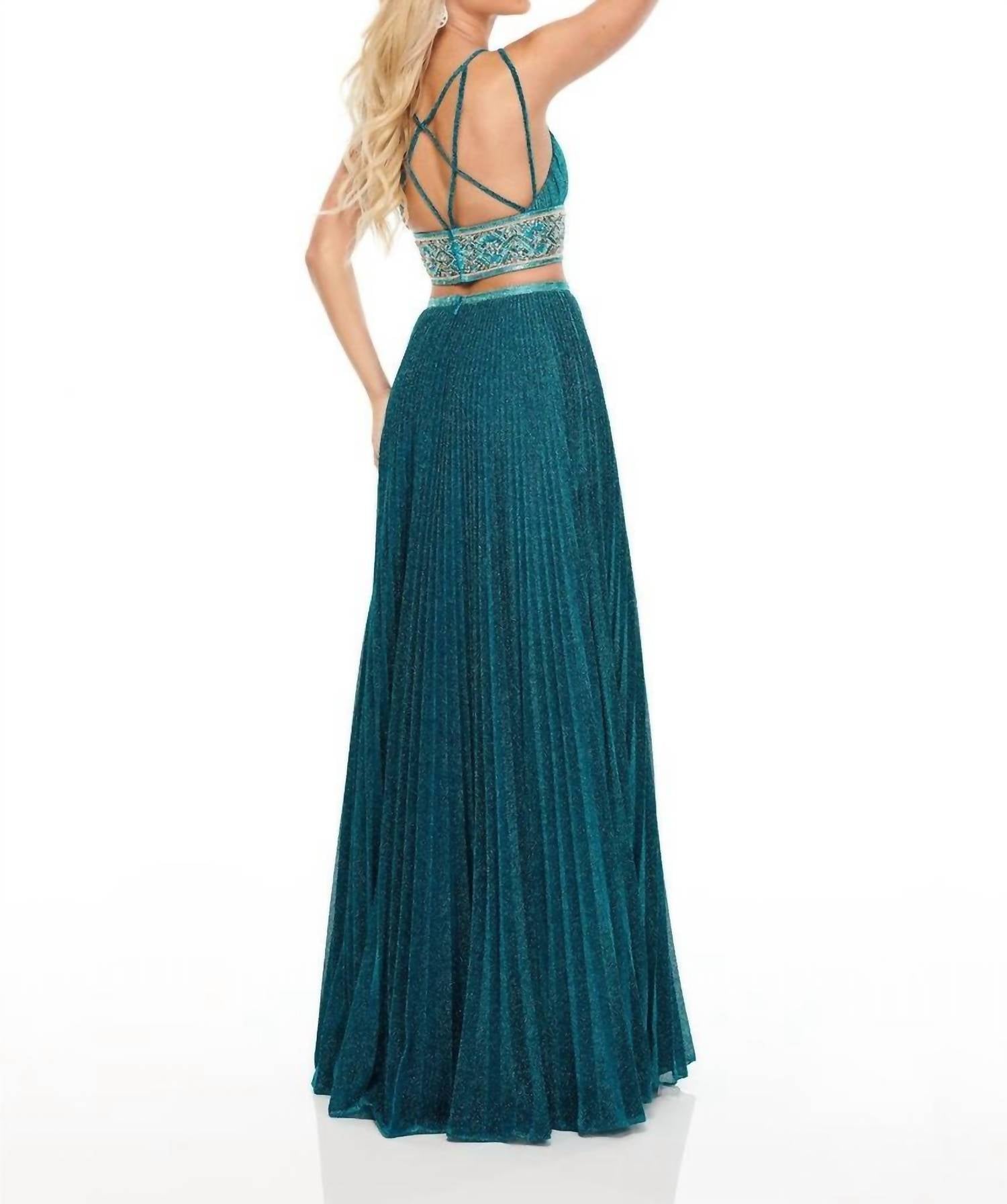 Rachel Allan - Pleated Shimmer Woven Two-piece Prom Gown