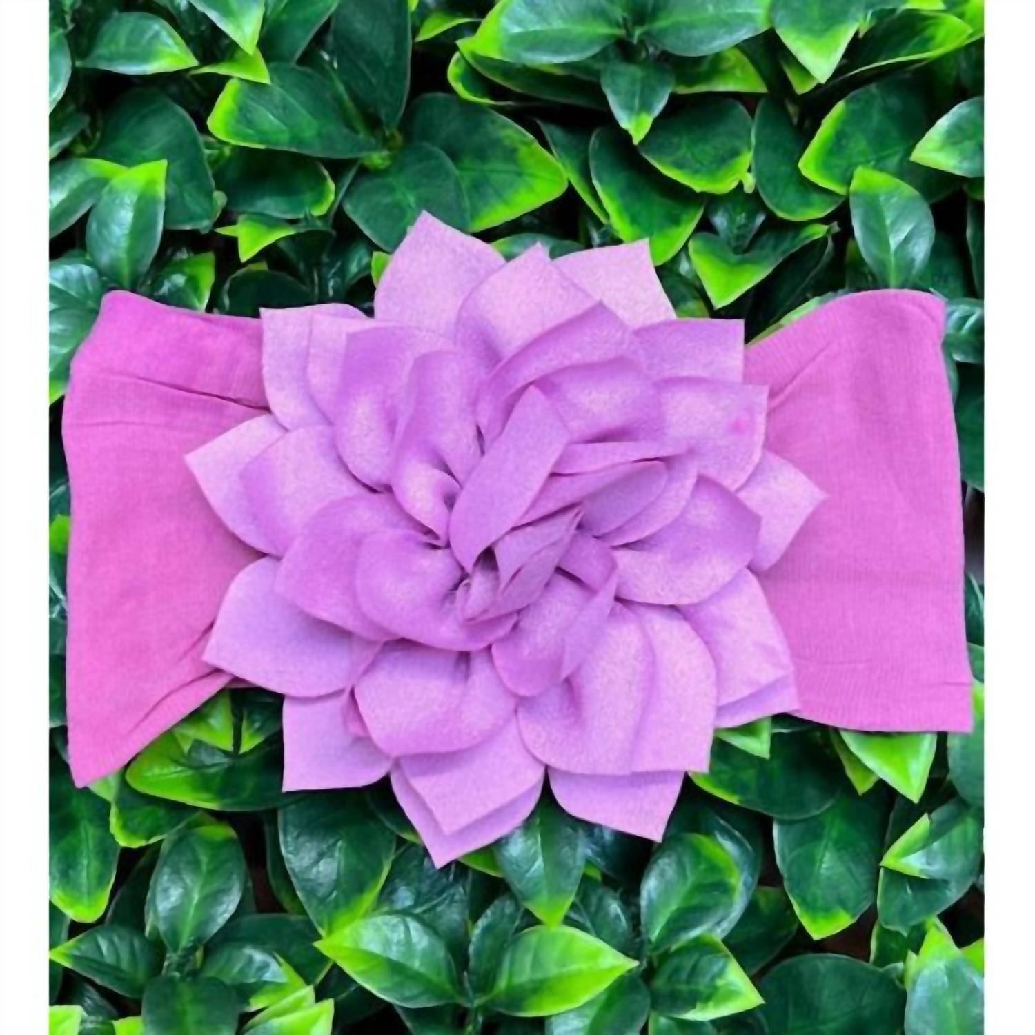 Introducing the Bloom Baby Bloom Oversized Flower Headband by KIDSCHARM, a vibrant addition to your little one's wardrobe available in charming hot pink and lavender hues. Each headband features a layered 3D floral design, making it a standout accessory. Crafted for soft stretch and all-day comfort, it is perfect for newborn photos, birthdays, or everyday fabulousness. Designed to fit most infants and toddlers comfortably.