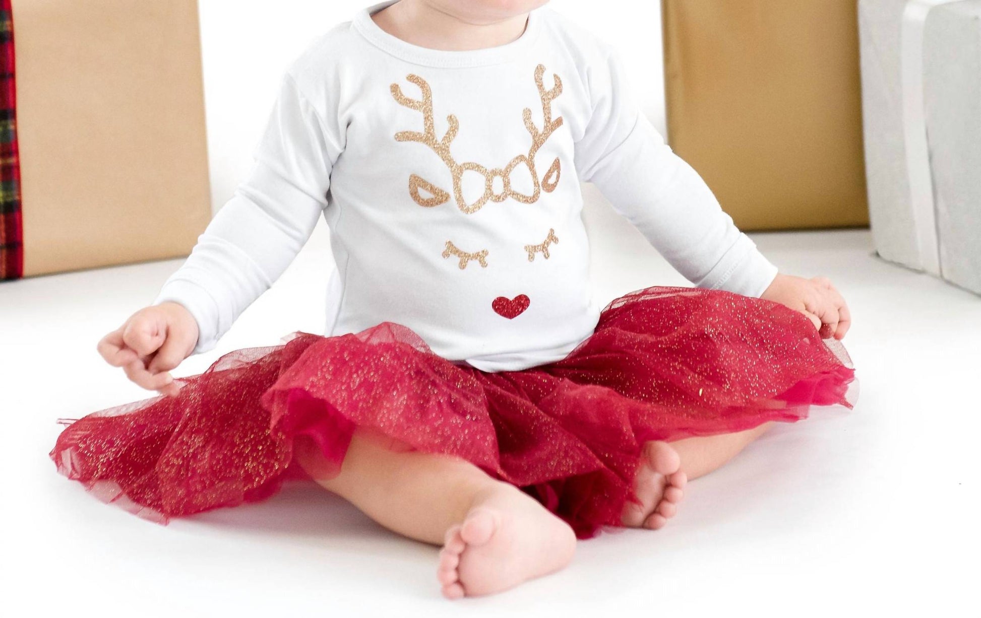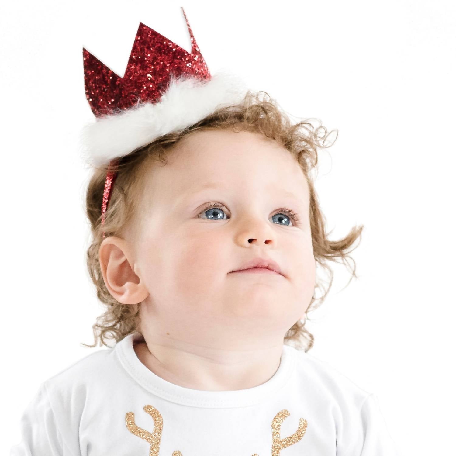 Complete her holiday outfit with this Sweet Wink Red Glittering Crown. Pair this crown with the Sweet Wink t-shirts, tutus and skirted pants in the collection or any holiday outfit. A great little crown for her first holiday photo as well. It's light weight and comfortable and features a white felt inner and a white fluffly faux fur all the way around. Comes packaged in a clear box that's suitable for baby shower gift giving.