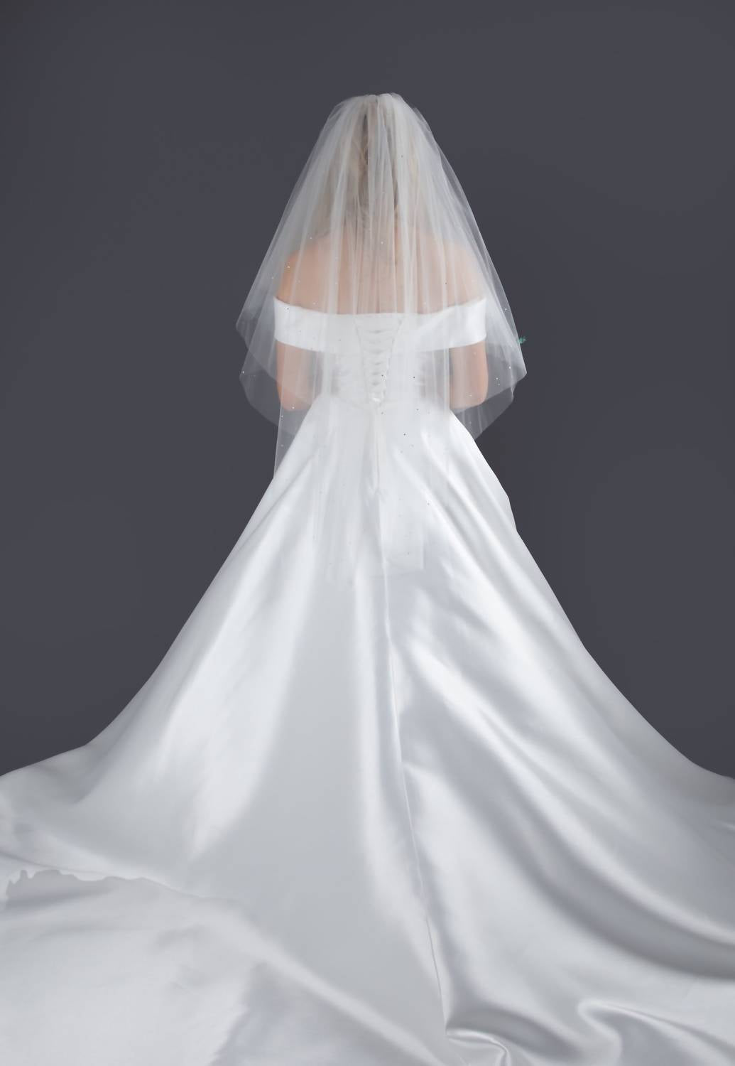 Morilee - Circular Fingetip With Scattered Rhinestones Veil