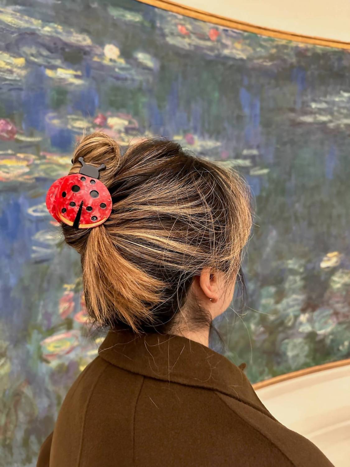 Add a whimsical touch to your hairstyle with the Women's Ladybug Claw Clip by Solar Eclipse, available in vibrant red. This charming accessory is imported and hand-painted, featuring a delightful double-sided design. Crafted from 100% recyclable wood pulp, it combines sustainability with style. Perfect for adding a playful flair to your hair accessories collection.