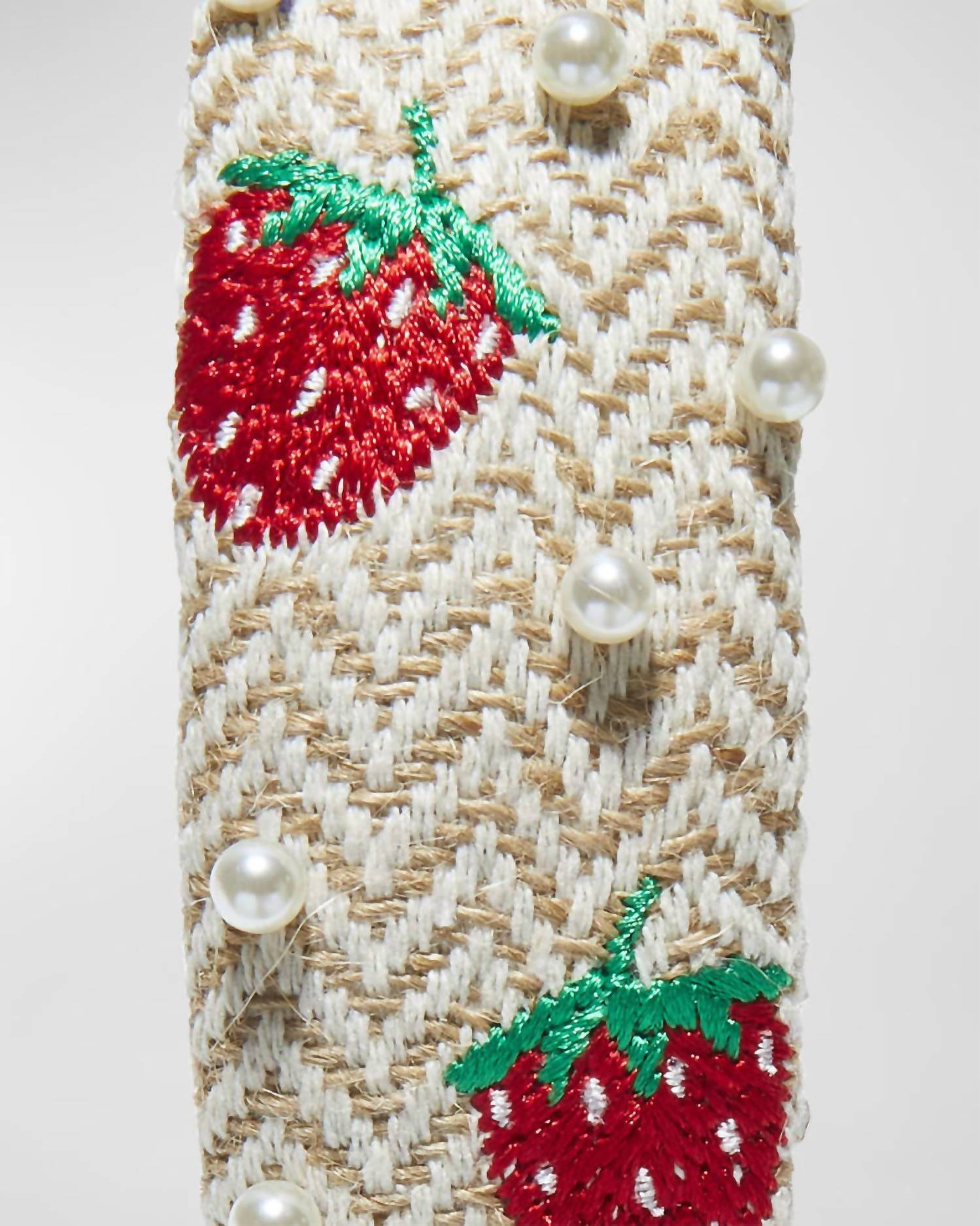Add a sweet, whimsical touch to your look with the Women's Pearl Slim Knotted Headband by LELE SADOUGHI. Crafted from strawberry shortcake cotton and adorned with faux pearls, this knotted headband features an embroidered strawberry motif and measures approximately 1.5" in width. Finished with the signature logo charm, it’s a charming accessory that brings playful elegance to any outfit.