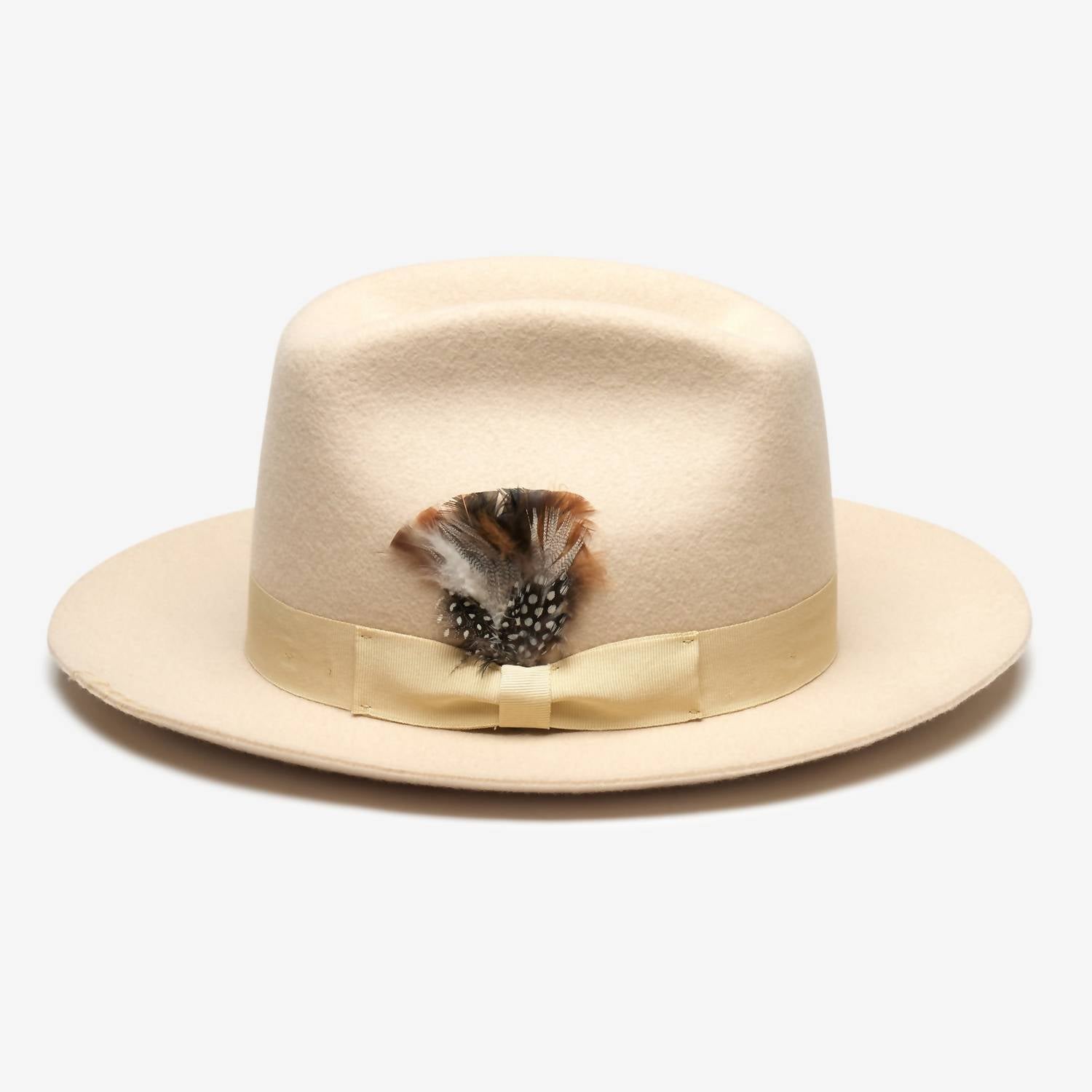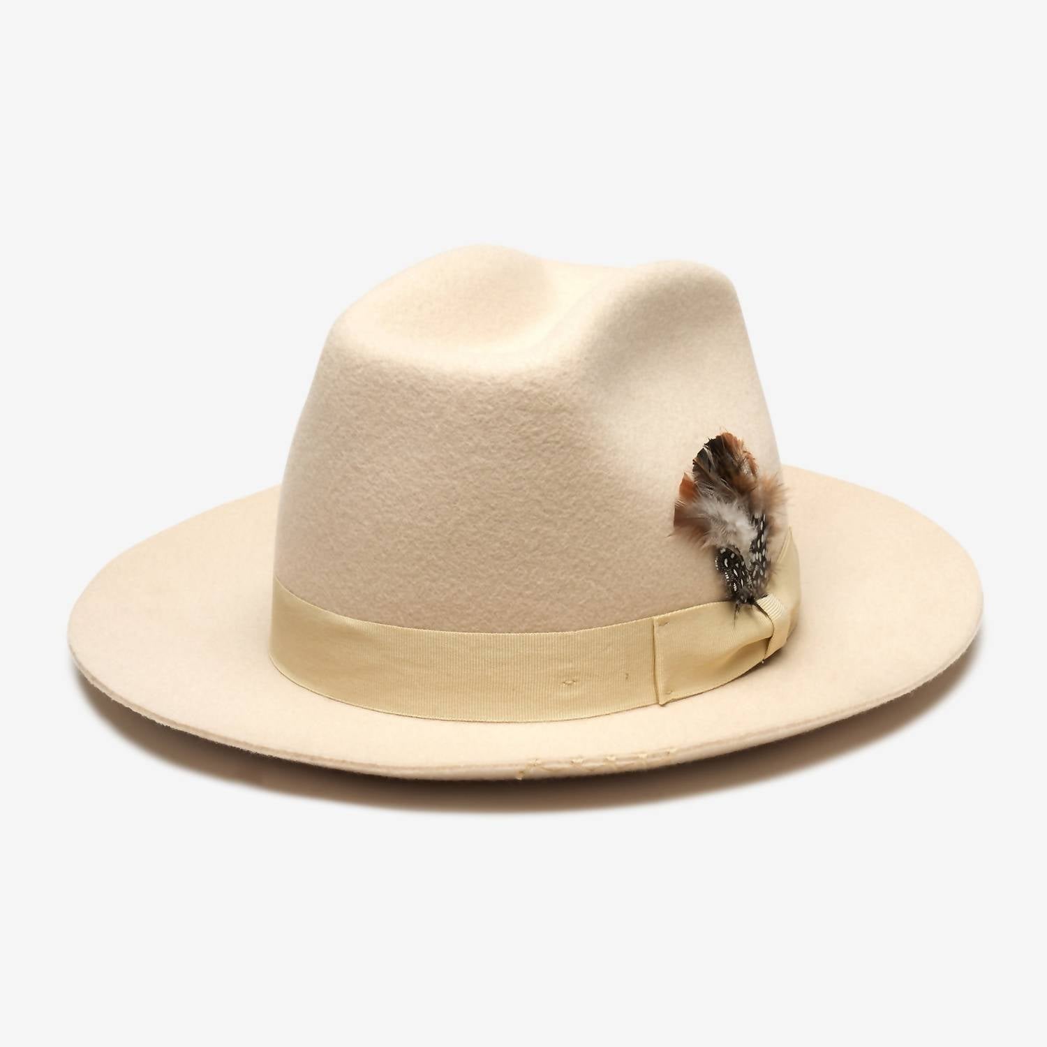 Turn heads in this stylish and chic hat. Not only is this accessory a must for keeping the sun out of your face, it will also be the perfect complement to any cute warm-weather outfit. Elevate your headwear collection with the Women's Crosby Hat by WYETH, crafted from premium Australian wool. This hard-brimmed felt hat comes in an elegant bone color and features a sophisticated grosgrain ribbon trim accented with a feather. The hand-stitched brim detail adds an artisanal touch to this timeless accessory, perfect for any occasion. Made to offer both durability and style, this hat complements various looks seamlessly.