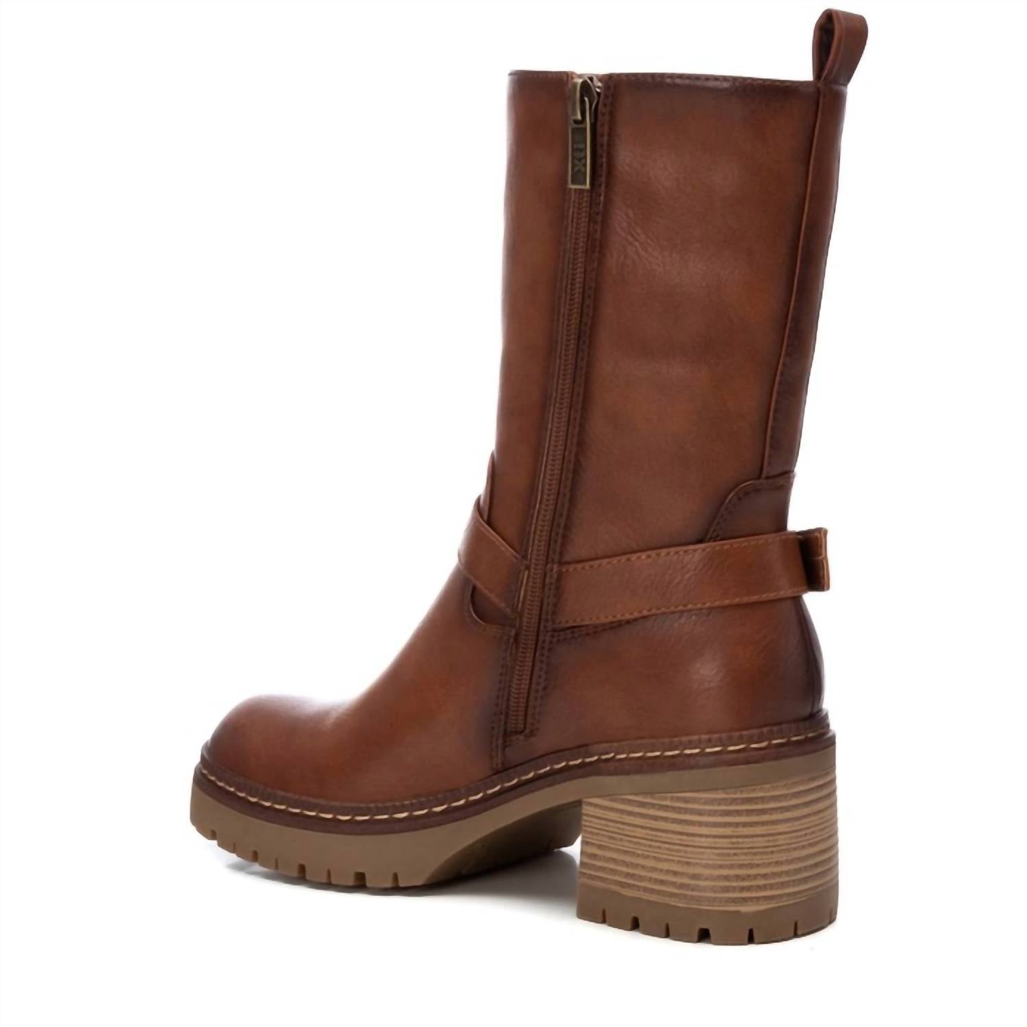 These faux leather boots feature a mid-height 6 cm block heel and a non-slip sole, designed with striking buckle details for a chic biker look. Ethically crafted and versatile, they are perfect for any outfit and ideal for on-the-go days.