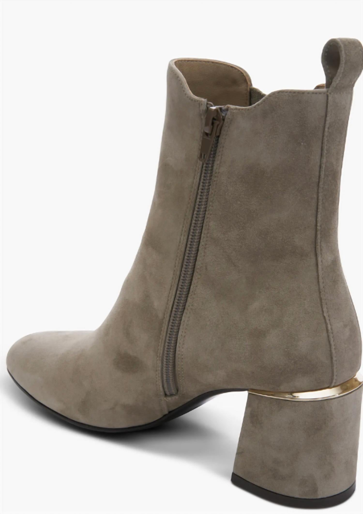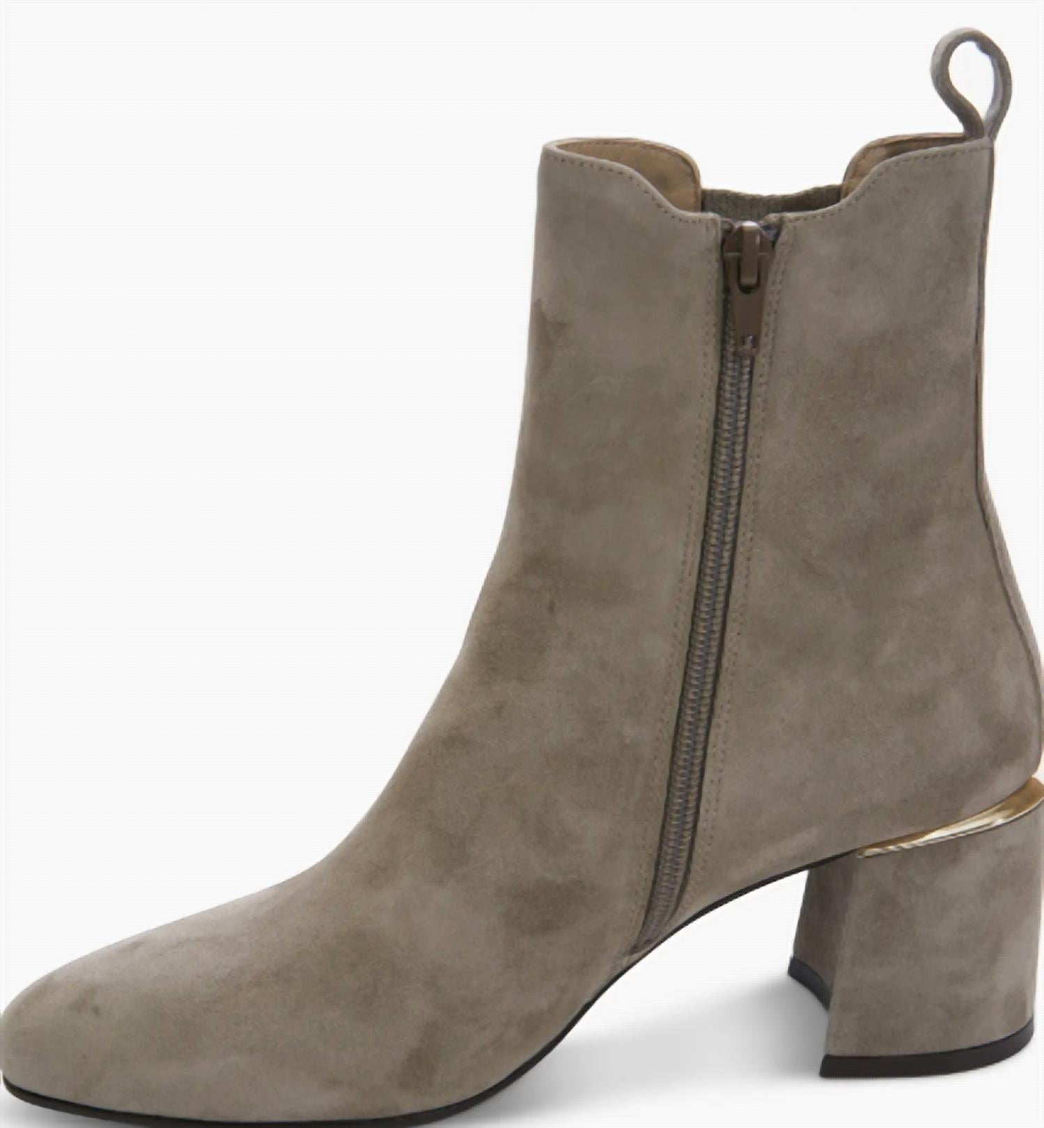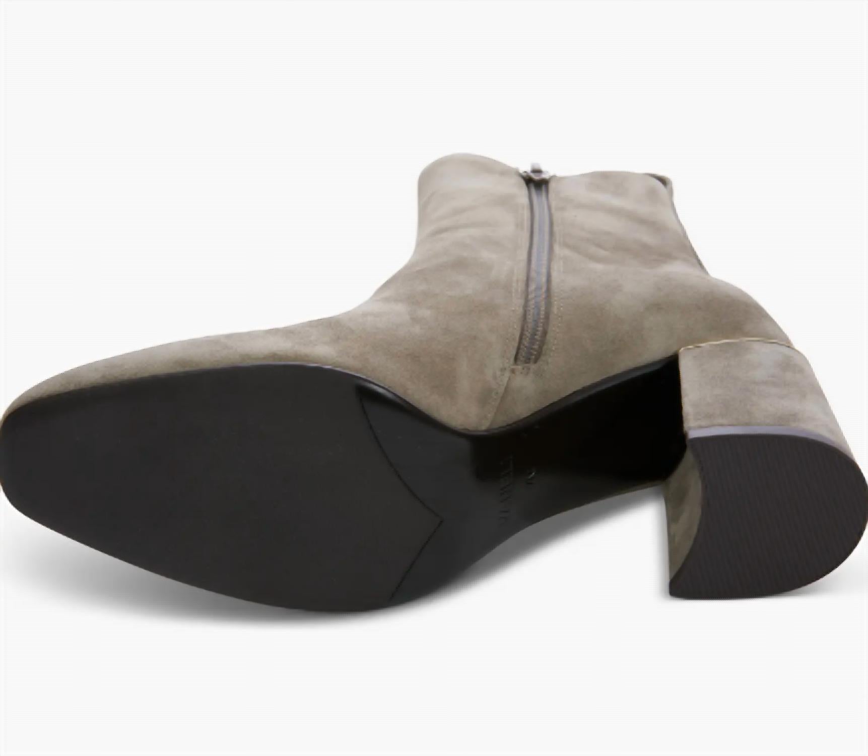 A stylish boot with a comfortable fit and the perfect amount of height. These classic boots are the perfect addition to any outfit and can be worn season after season. Step into style with the Women's Ilias Block Heel Bootie by VANELi, a must-have for the Fall season. Designed in a chic taupe, these suede heeled boots feature polished hardware and a rib inset for easy wear. A sleek 2 1/4" block heel and 6" shaft provide a modern touch, while the round toe shape ensures comfort. Comprised of a leather and textile upper and lining with a rubber sole, these booties are perfect for a dinner party or Thanksgiving gathering. Care instructions not provided. Imported.