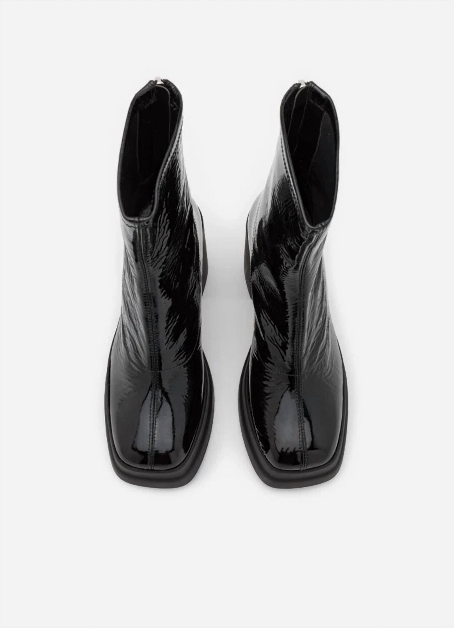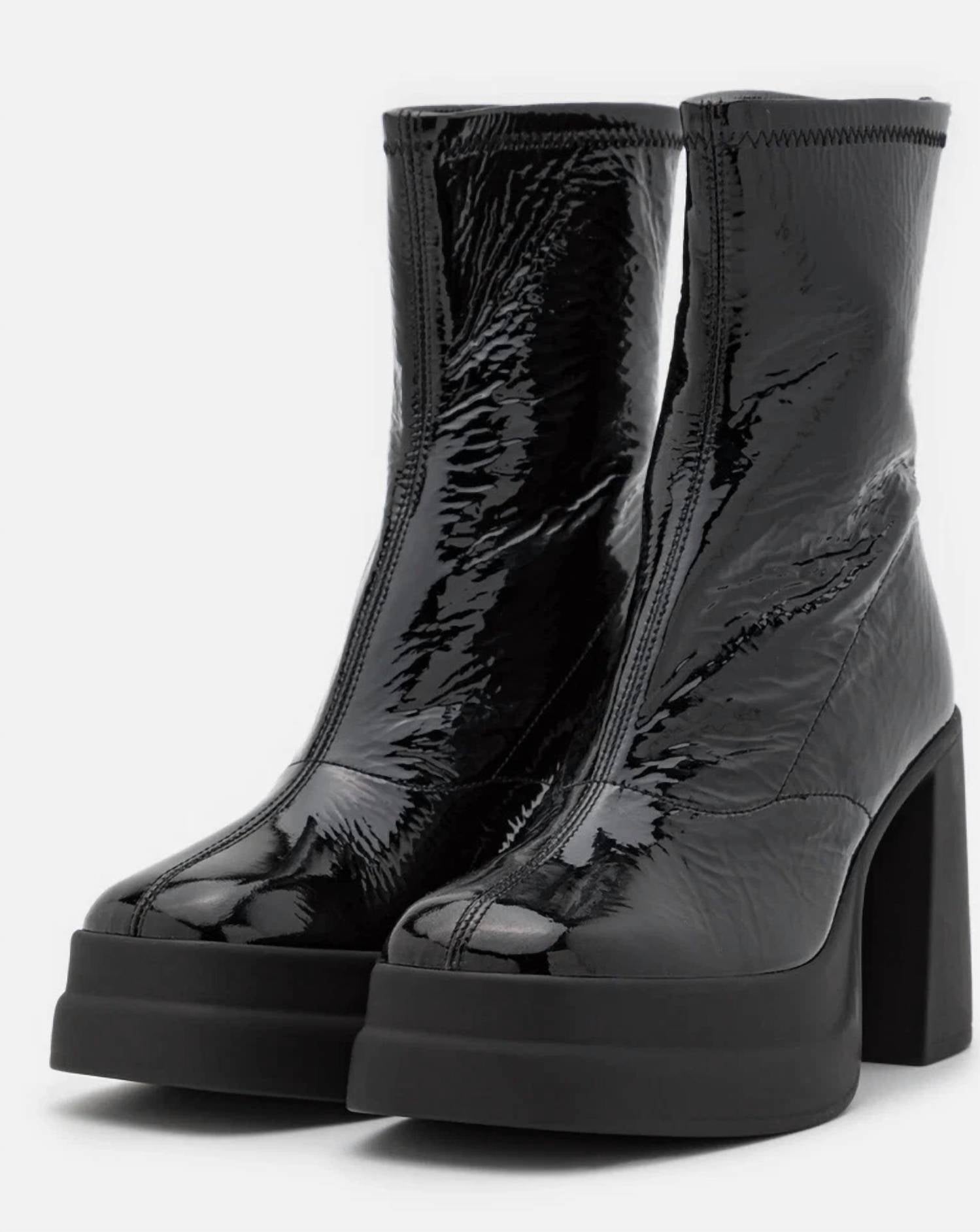 Step out in confidence and showcase your impeccable taste with these fashionable and versatile boots. Their classic style will have you reaching for these boots season after season. Step into the spotlight with the Women's Double Stack Platform Boot by Free People in striking Black Patent. Crafted with a leather upper, its squared toe and high block heel create a bold silhouette perfect for any evening event. The boot features convenient front and back zipper closures and a synthetic outsole for durability. Elevate your fall wardrobe with this trendsetting piece, embodying the essence of quiet luxury with a heel height of 3.94 inches. Imported.