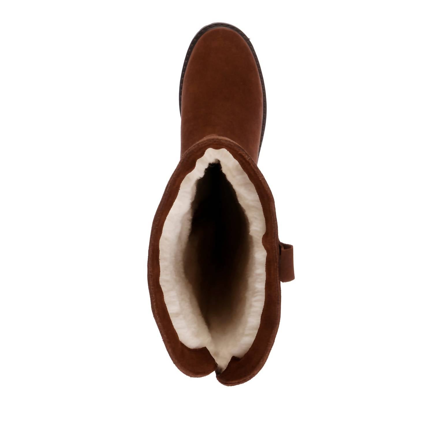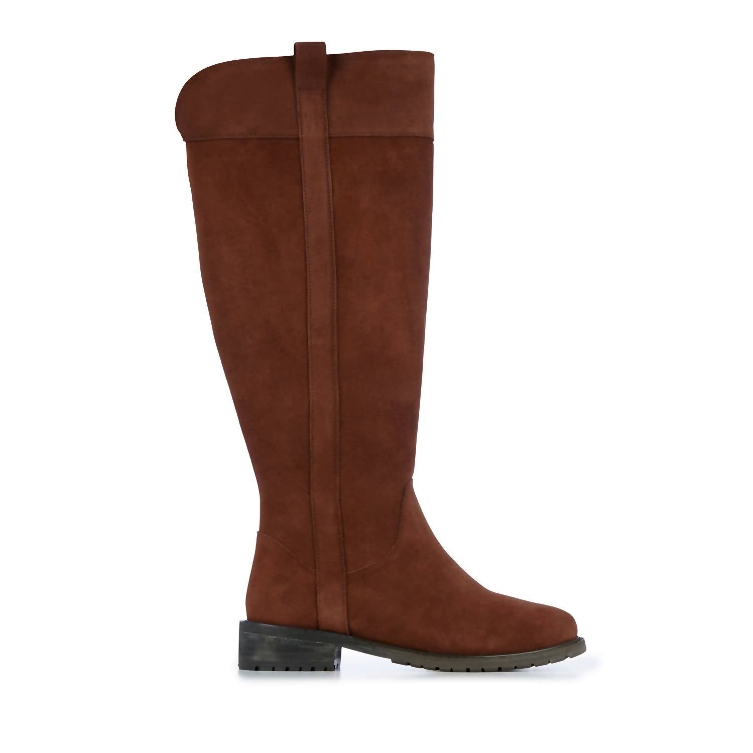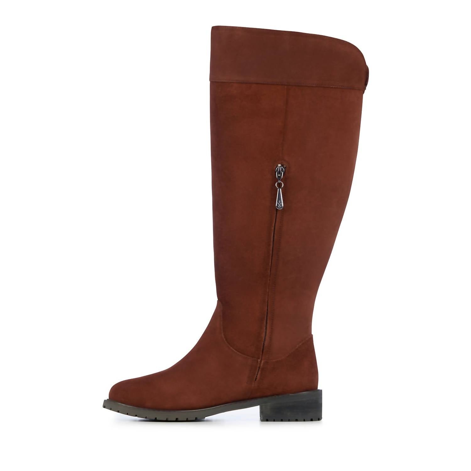 Fashionable high boot design. Premium waterproof suede. 100% Australian Merino wool lining and footbed. Invisible zip and gusset. Waterproof welt. Leather heel stack. Waterproof durable rubber outsole with wave design.