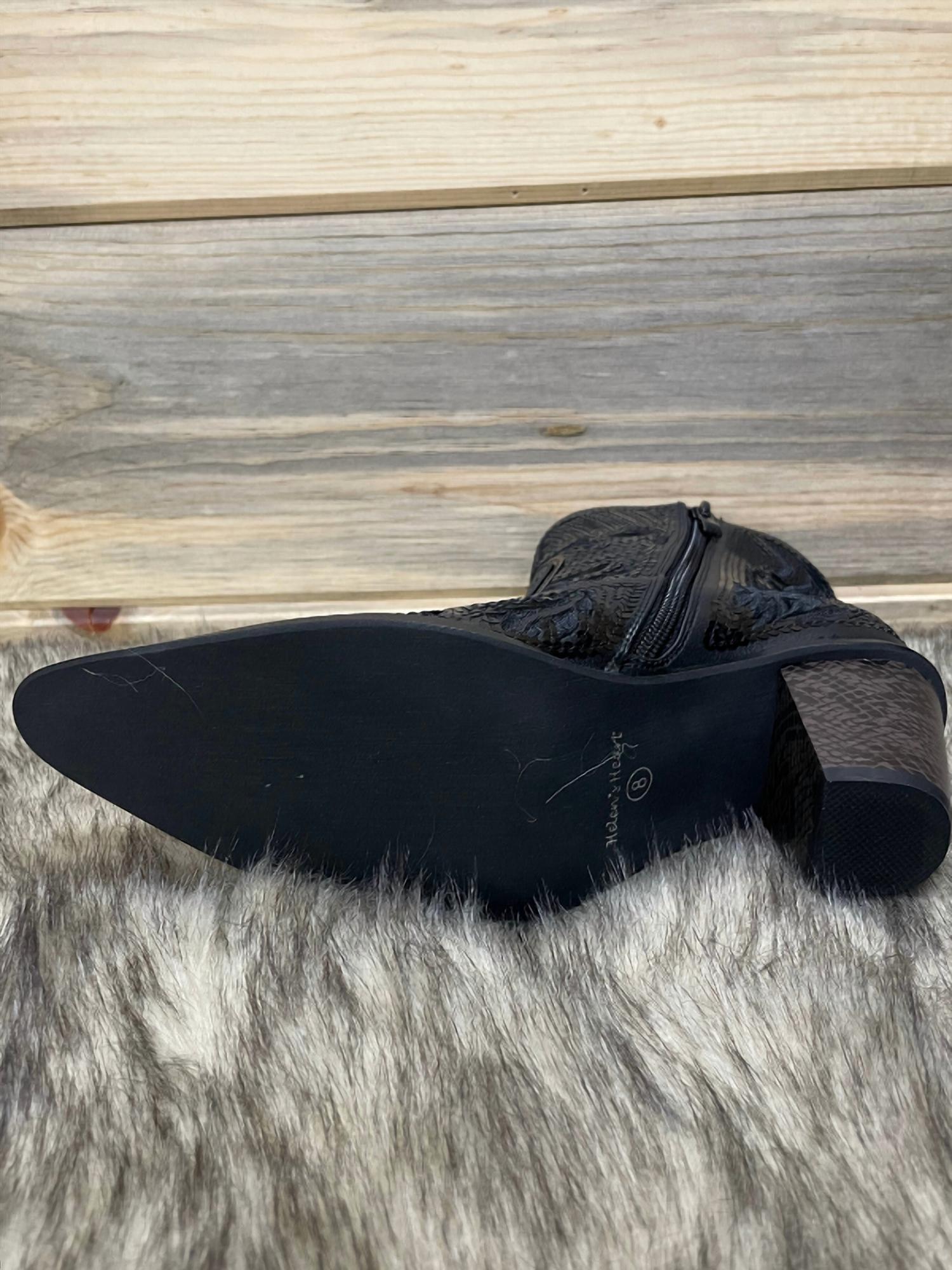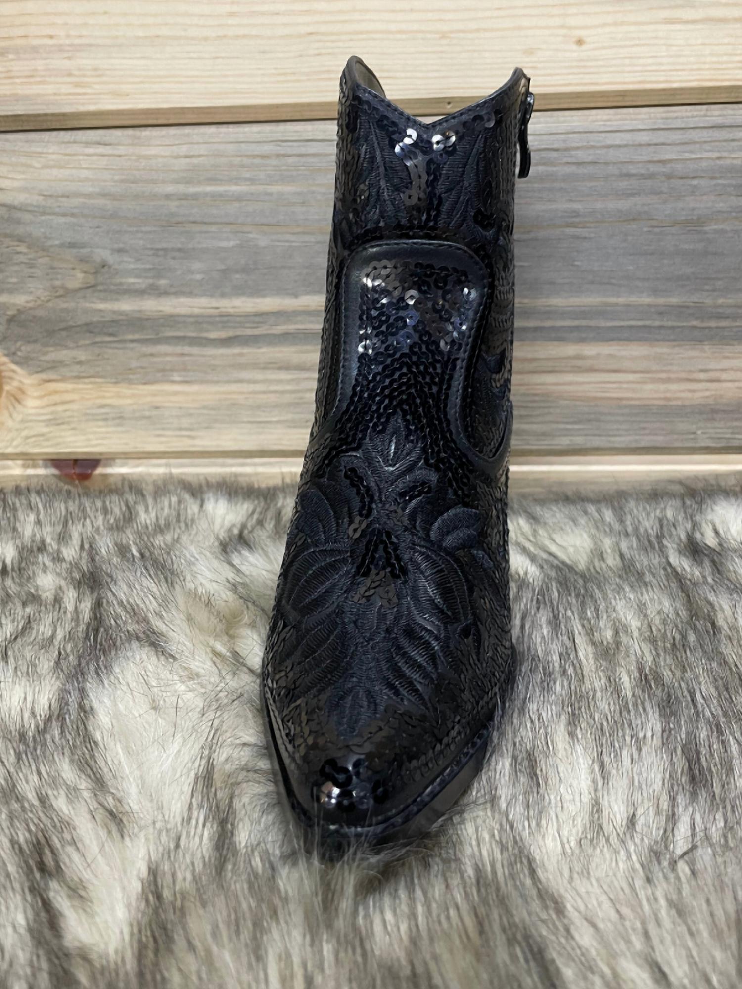 Short bling and embroidered with zipper closure. Heel: 3.0".
