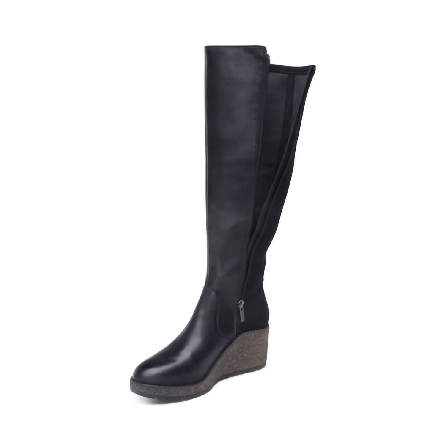 Upgrade your shoe game with these classic heeled boots, designed to merge sophistication and style. Comfortable enough for long days or a night out on the town. Step out in style with the Women's Rose Wedge Boot by Aetrex, designed for comfort and elegance in every step. These boots feature a genuine leather upper with a stretchy gore and side zipper for easy adjustability. The lightweight cork midsole and durable rubber outsole enhance comfort and longevity, while the removable insole provides customizable support. Embrace the streetwear trend this fall with a sophisticated 2.5” wedge heel, perfect for vacations or everyday adventures.
