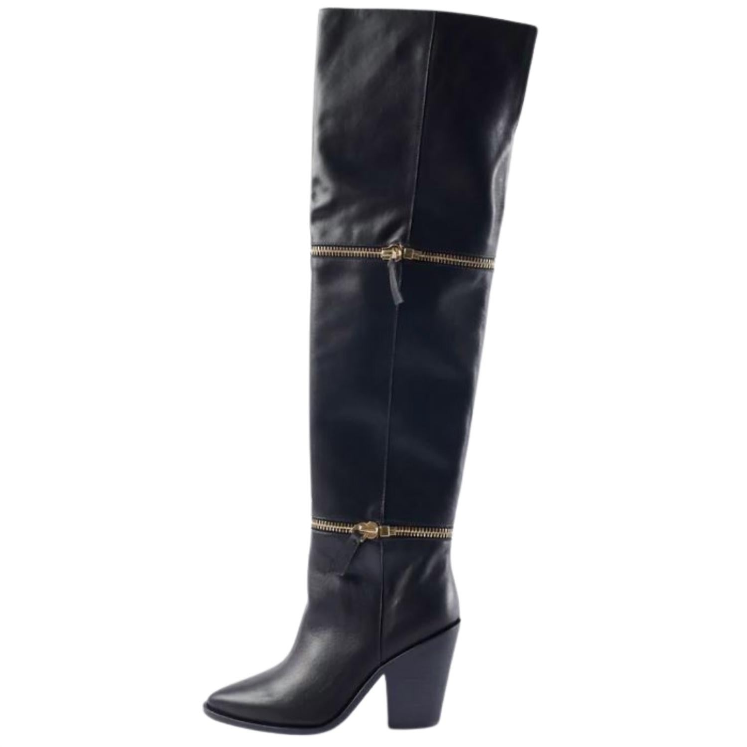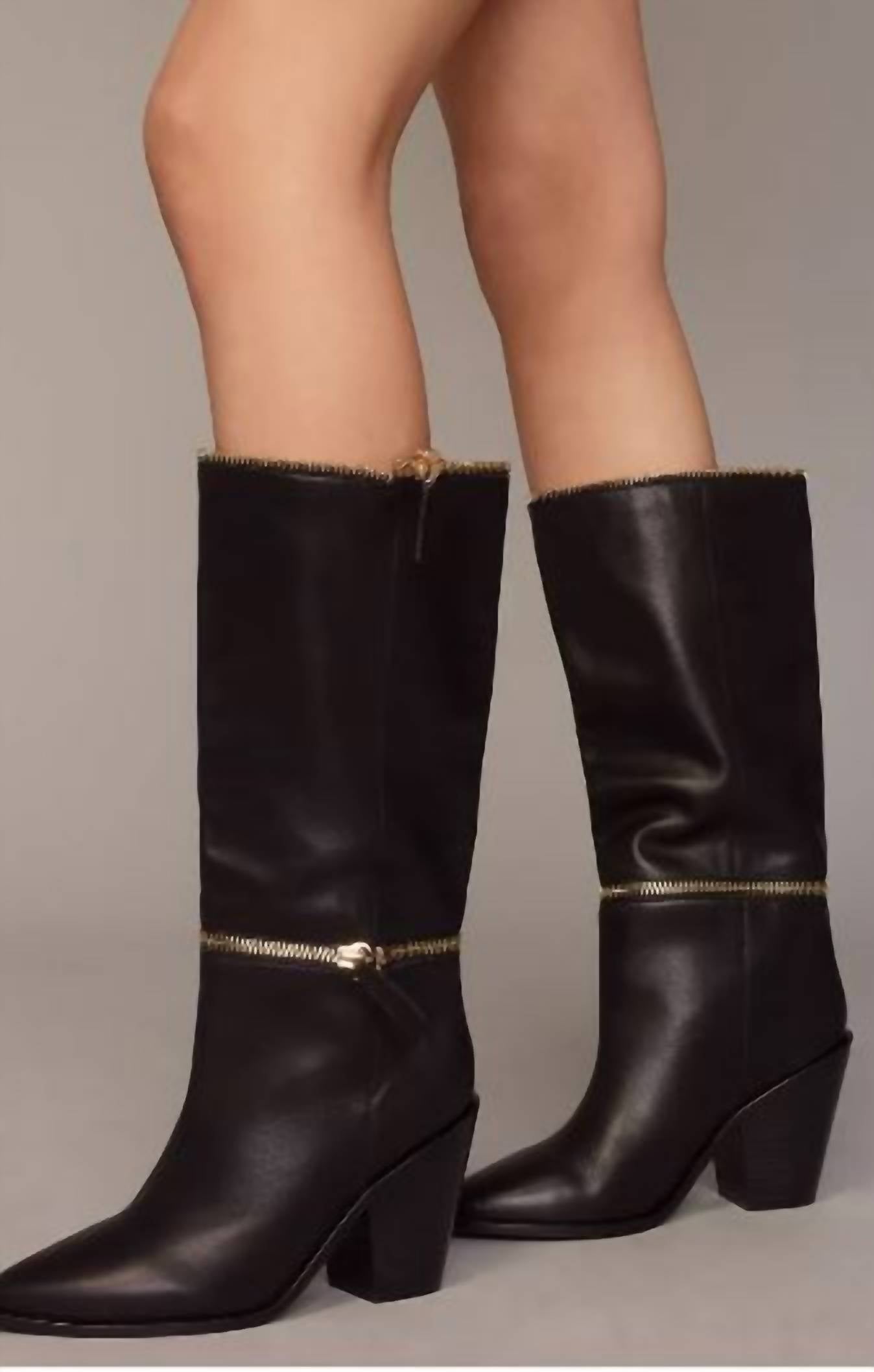 A stylish boot with a comfortable fit and the perfect amount of height. These classic boots are the perfect addition to any outfit and can be worn season after season. Elevate your wardrobe with the Women's Mocha Boots by Cecelia New York, a stunning pair in all-black leather designed for a sophisticated look. These boots feature a sleek pointed toe, over-the-knee shaft measuring 21.5 inches, and a comfortable 18.5-inch calf circumference. Crafted with a high 3.5-inch block heel, they include a convenient zipper closure and a 4mm padded insole for lasting comfort. Perfect for fall and special occasions like Thanksgiving, these minimalist boots effortlessly combine durability and elegance.