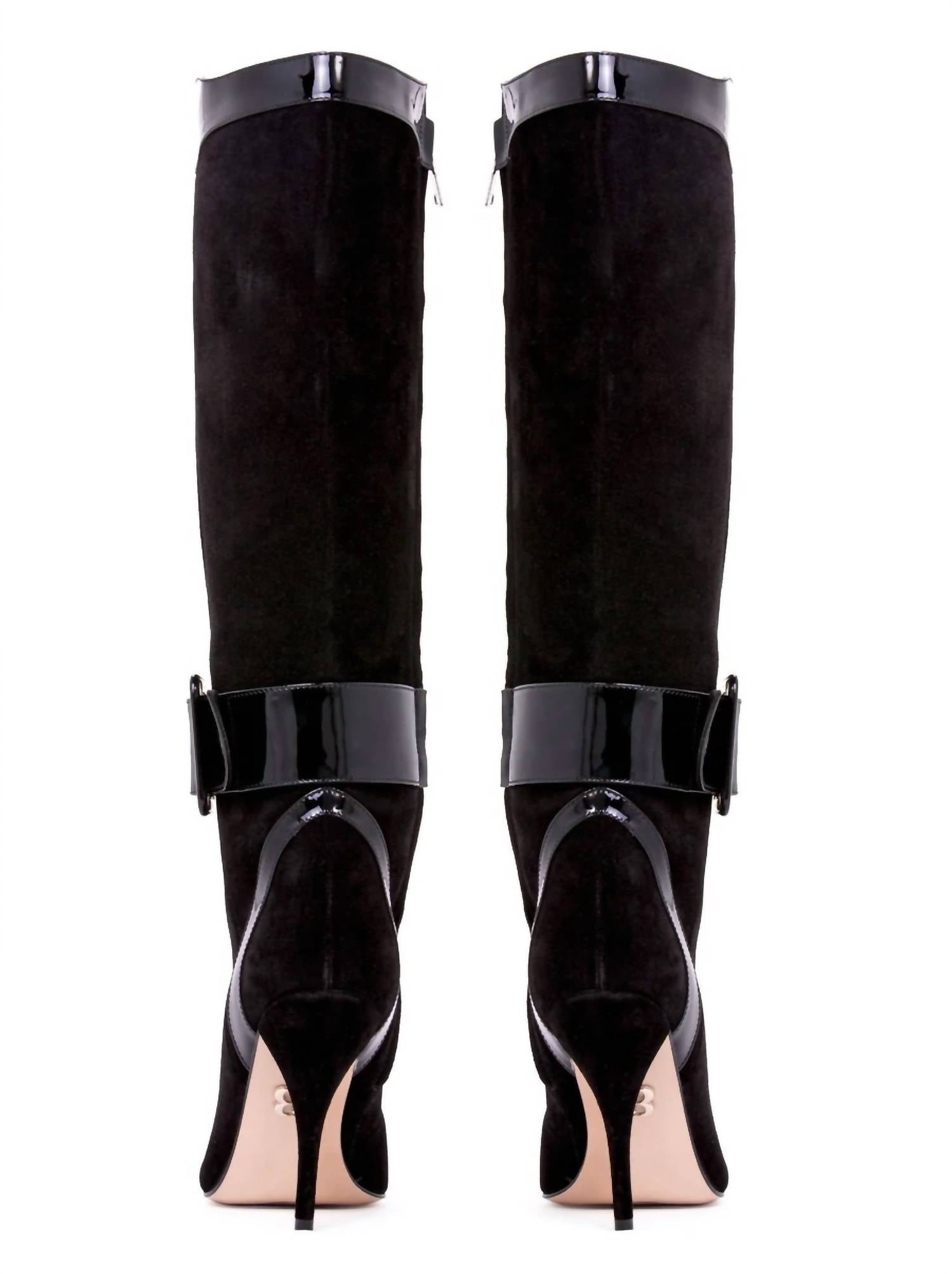 A stylish boot with a comfortable fit and the perfect amount of height. These classic boots are the perfect addition to any outfit and can be worn season after season. Elegant high shaft suede boot, with leather trims and an inside zipper. 98mm = 3.85" heel. 6mm = 0.23" cushioned insole lining. Slip resistant.