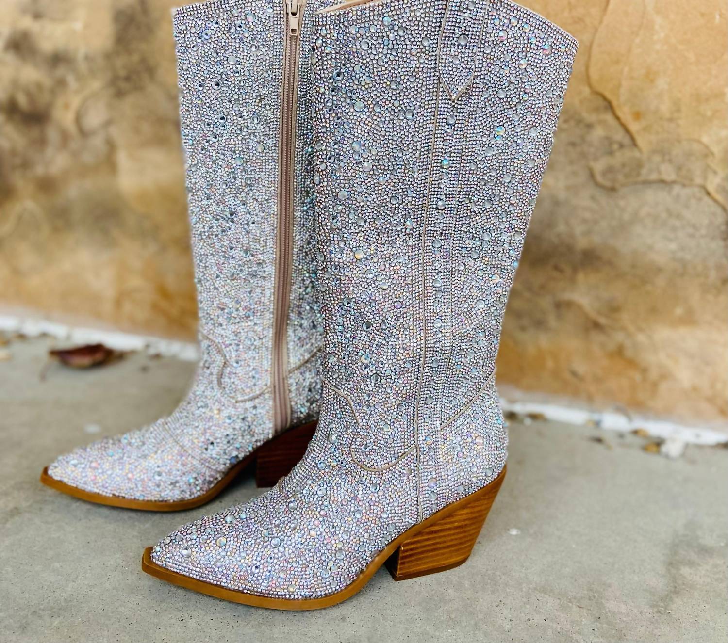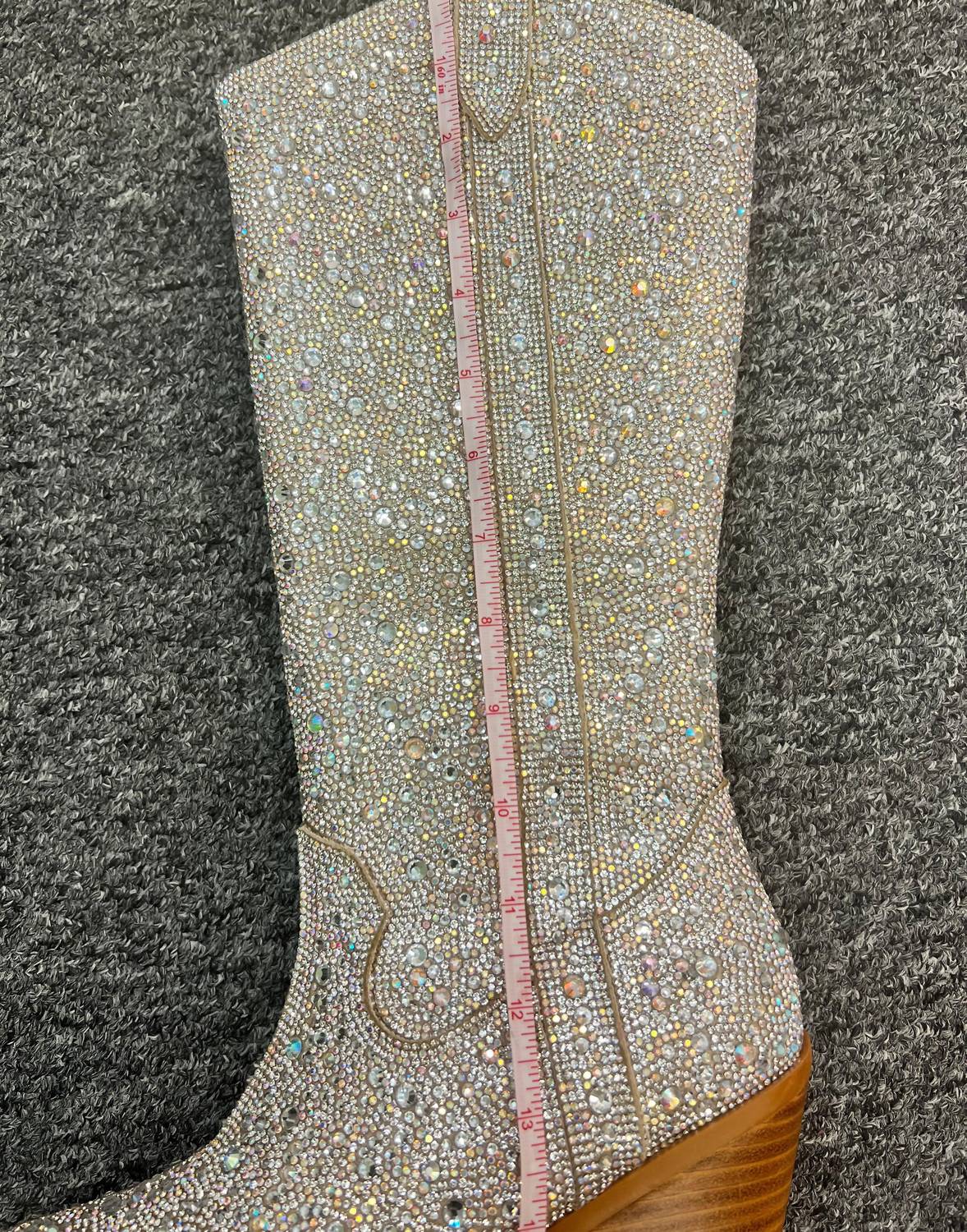 Step out in confidence and showcase your impeccable taste with these fashionable and versatile boots. Their classic style will have you reaching for these boots season after season. Step into the spotlight with the Cozzy Girl Women's Glitz & Glam Rhinestone Boots, designed with dazzling silver rhinestones for maximum impact. These heeled boots feature a pointed toe silhouette and a convenient side zipper closure. They sit stylishly on a mid-height 3" block heel, providing a true-to-size fit that balances glamour with comfort. Perfect for making a bold statement at any event.