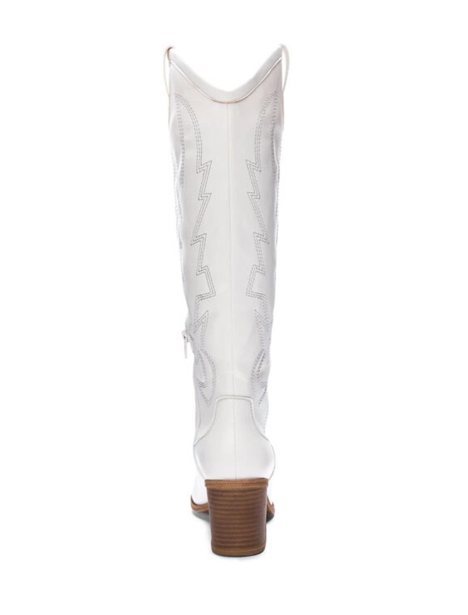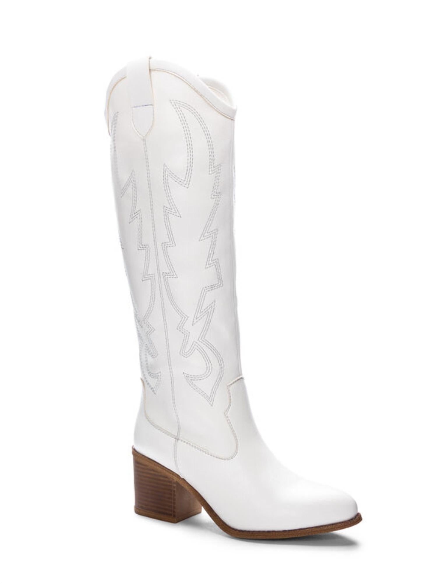 Its semi-pointed toe, block heel, and whipstitch detailing make this cowboy boot impossible to dethrone, whatever color you lasso it in. Pleather upper. Manmade materials throughout. Whipstitch detailing. Side zipper. 2.75" heel.