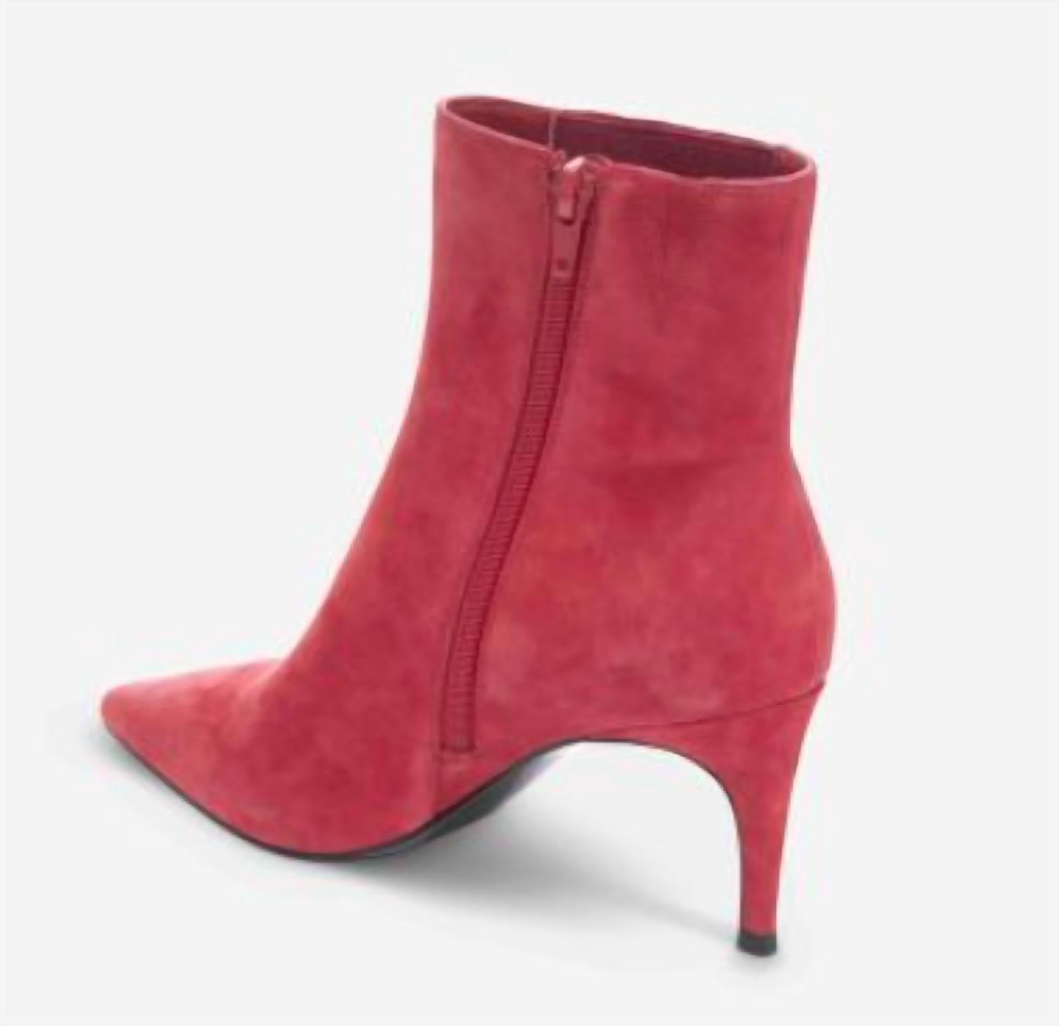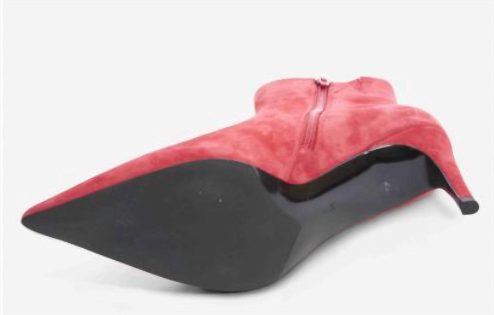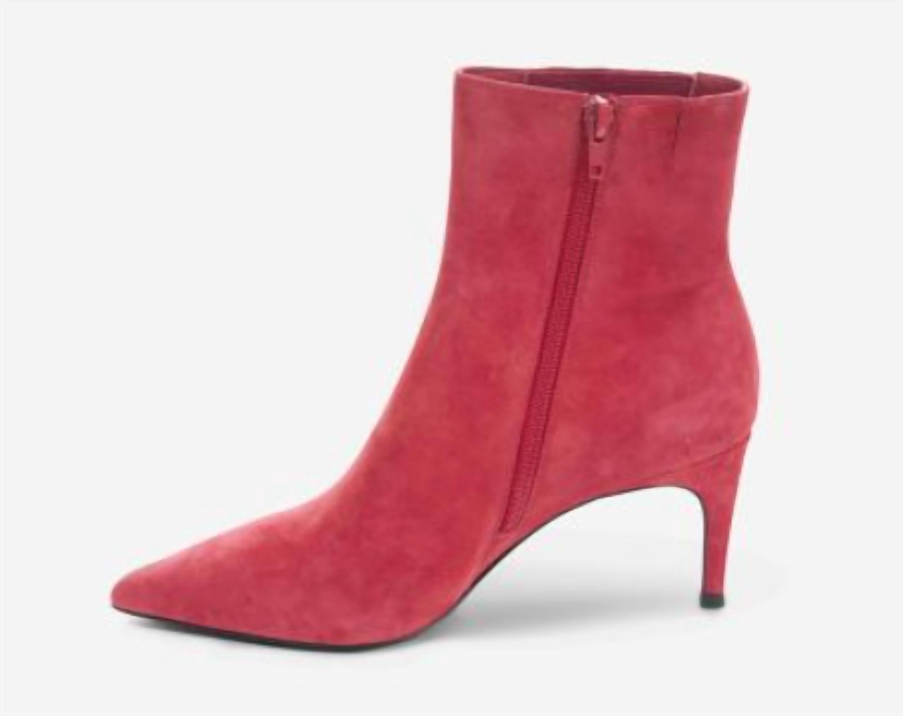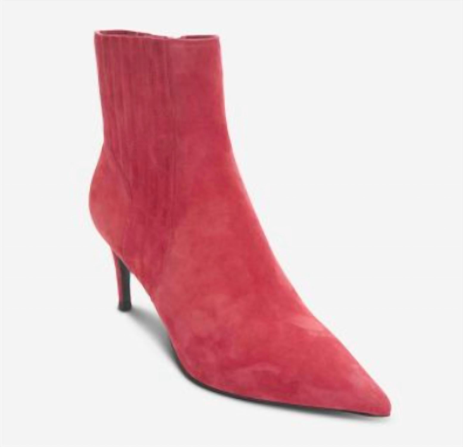 A stylish boot with a comfortable fit and the perfect amount of height. These classic boots are the perfect addition to any outfit and can be worn season after season. Step into sophistication with the Women's Dearan Point-toe Suede Ankle Boots by VANELi, an ideal choice for dinner parties or New Year's Eve. Crafted in luxurious red suede, these minimalist boots feature a sleek pointed toe and a stylish 3-inch covered stiletto heel for an elevated look. Closure is a convenient side zip for easy wear. Embrace the fall season in style with these elegant heeled boots.